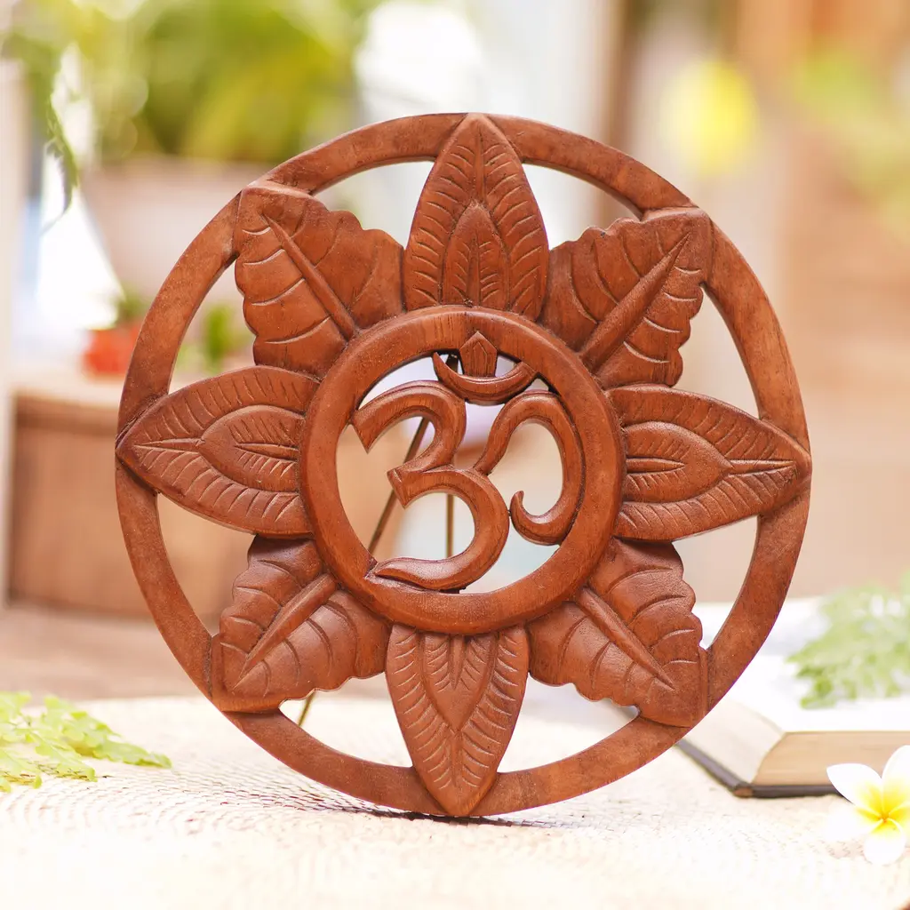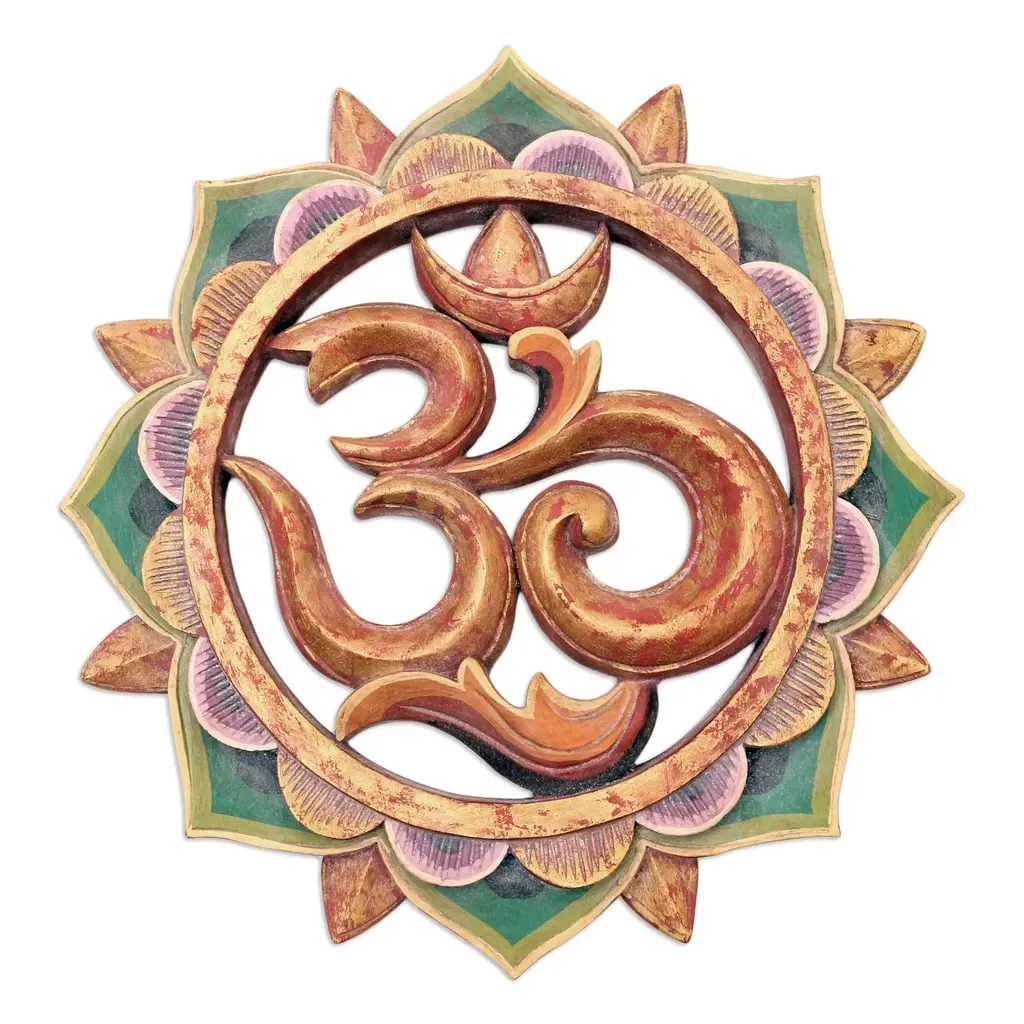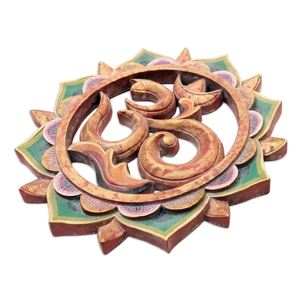 Hand Made Om-Themed Relief Panel- Lotus Ongkara