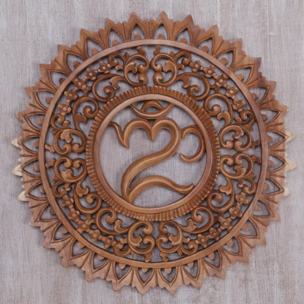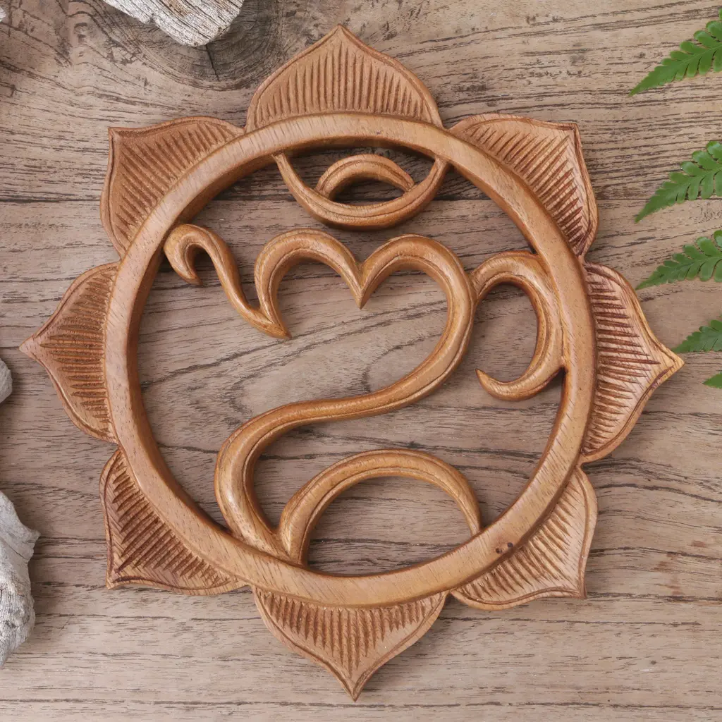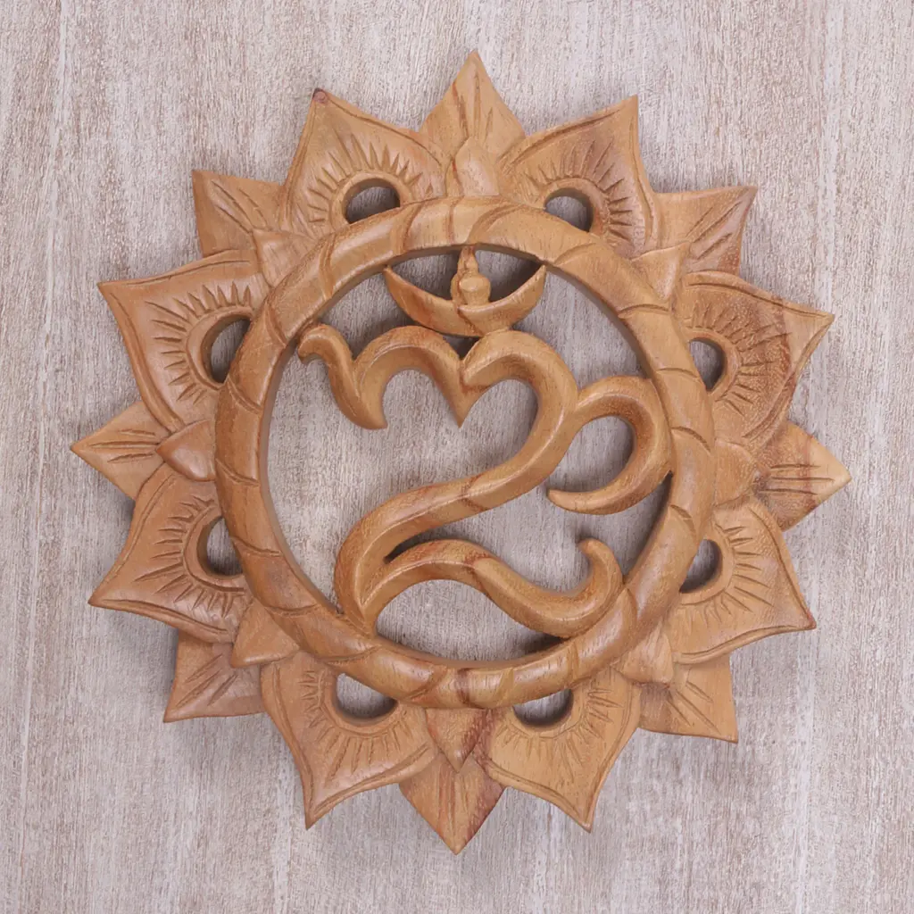 Hand Made Om-Themed Relief Panel- Lotus Ongkara