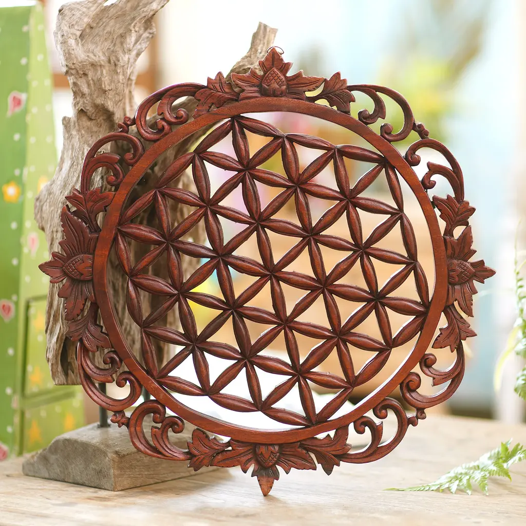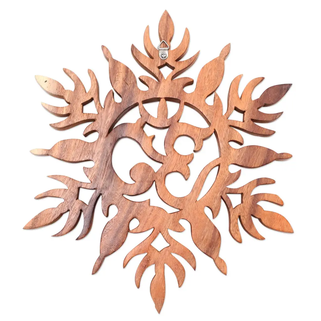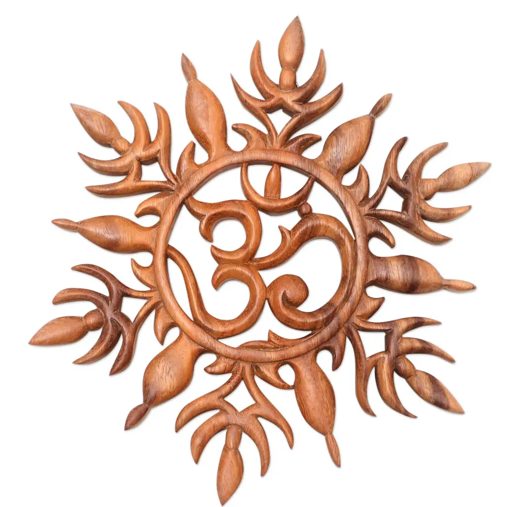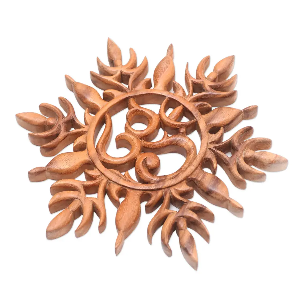 Dress your walls up with the help of this elegant relief panel designed by Bali's Komang Sri. Crafted from natural suar wood, the panel is centered with an openwork ong-kara om symbol the artisan surrounds with a circular frame and lovely decorative elements.
