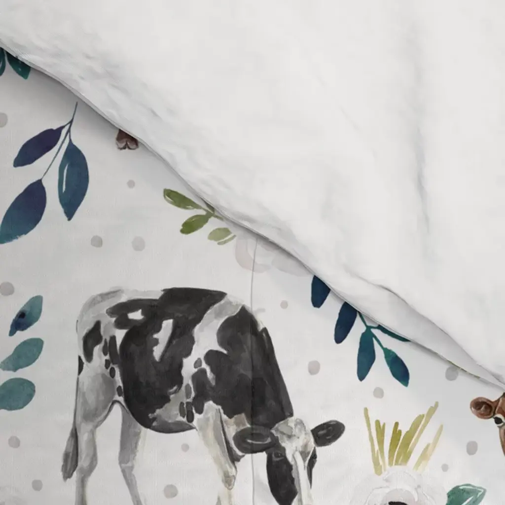 Hand-Painted Cows And White Flowers With Blue Accents Comforter