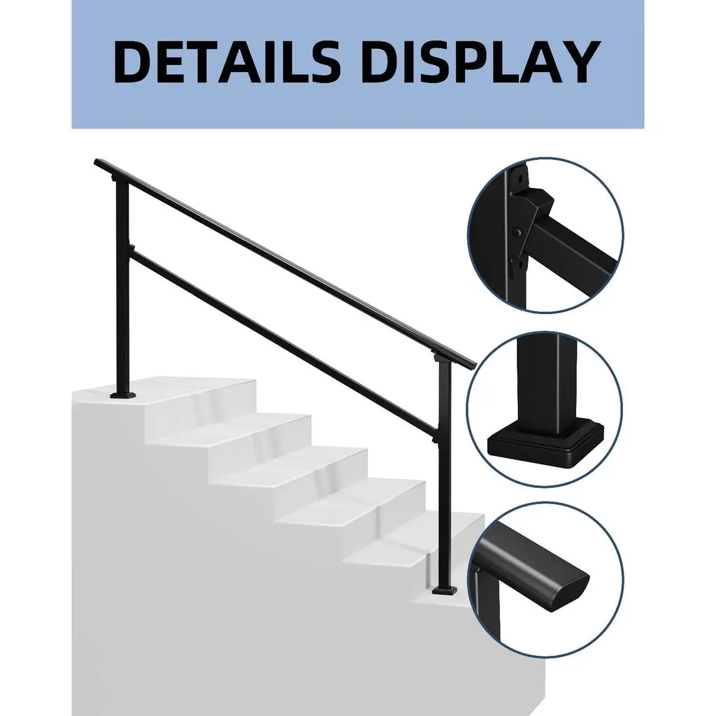 【Safety and Reliability】Our stair handrail is made of sturdy zinc steel material, providing excellent durability to ensure the handrail can withstand various pressures and impacts in daily use while maintaining its structural integrity, offering you long-term reliable support. The fine matte finish on the surface not only enhances the aesthetic feel of the handrail but also provides outstanding corrosion resistance.【Easy to Clean and Maintain】The outdoor stair handrail is treated with black paint. This not only provides a more comfortable tactile surface but also delivers excellent corrosion resistance, significantly extending its lifespan. You can easily wipe away surface dust with a cloth.【Wide Application】The stair handrail is an essential accessory in your home, ensuring the safety and convenience of your family when using the stairs. It can be installed indoors or outdoors, on staircases, porches, backyards, entrances, and more. It provides safety and support for the elderly, children, individuals with disabilities, and post-operative recovery.