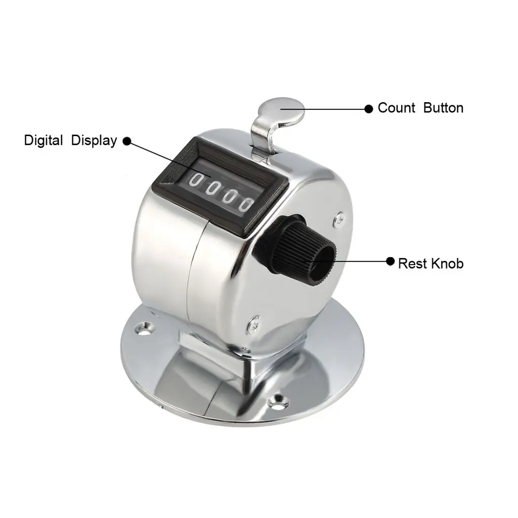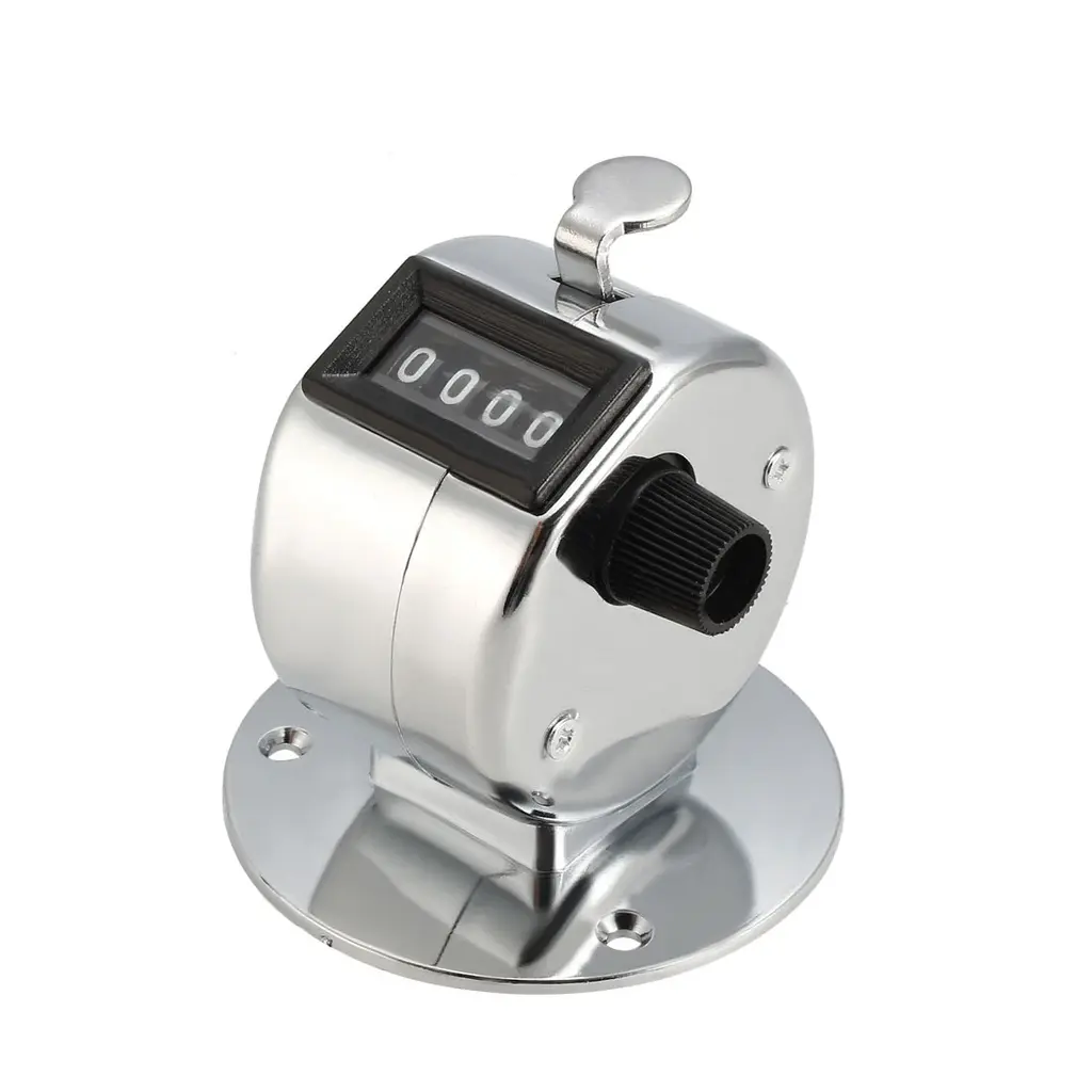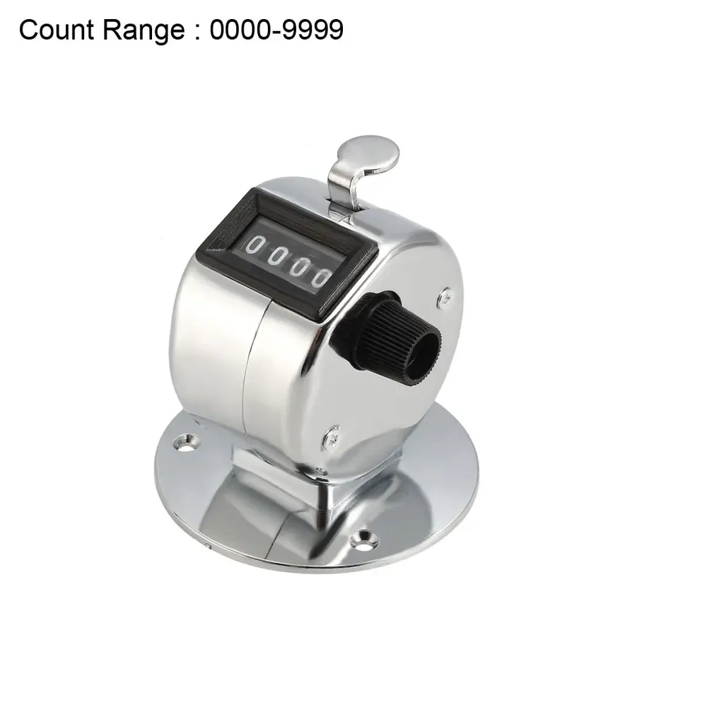 Hand Tally Counter 4 Digit Number Metal Mechanical Clicker Silver Tone - Silver Tone - Silver Tone