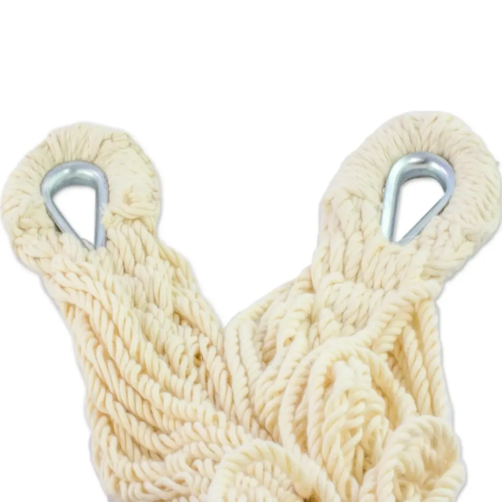 Handwoven on the backstrap loom, this single hammock is the work of Las Trampas Hammock Artisans. With a striped design of espresso and alabaster, it is as comfortable as it is beautiful. The hammock is created from two individual panels of woven fabric that are then sewn together for a cohesive unit. The proceeds from their work help the artisans afford a better education for their children.