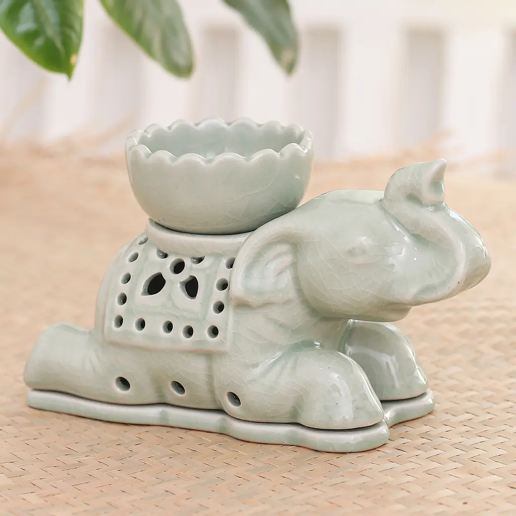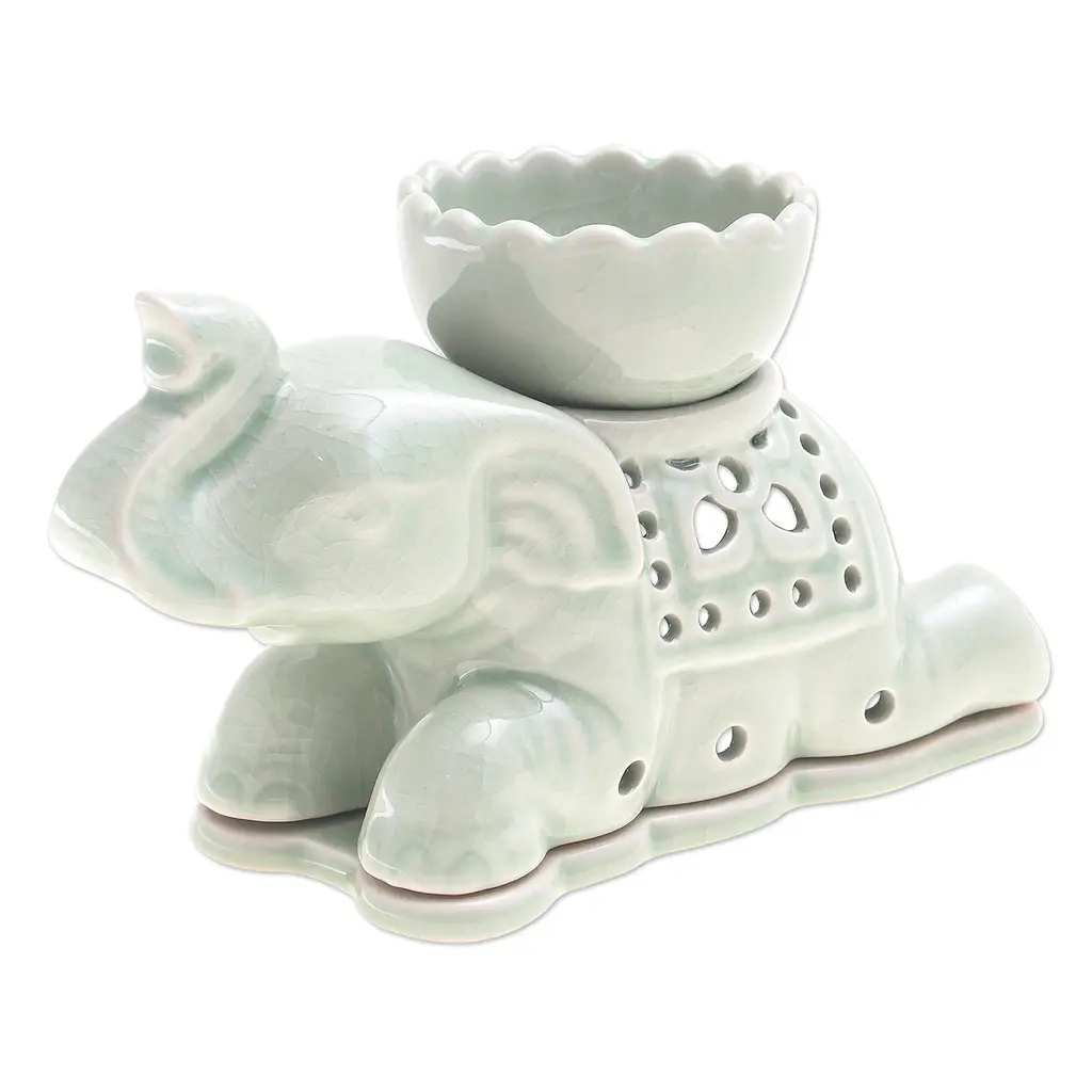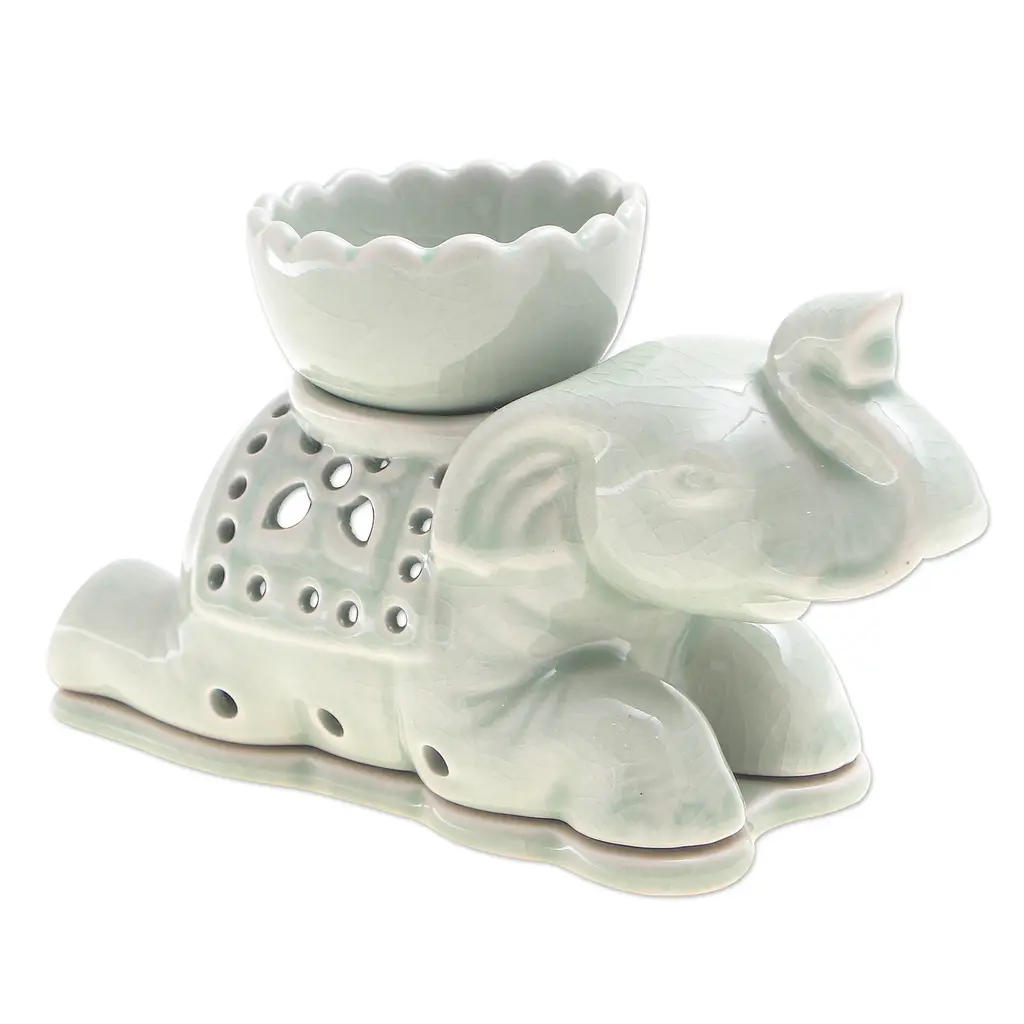 Handcrafted Celadon Oil Warmer- Royal Elephant