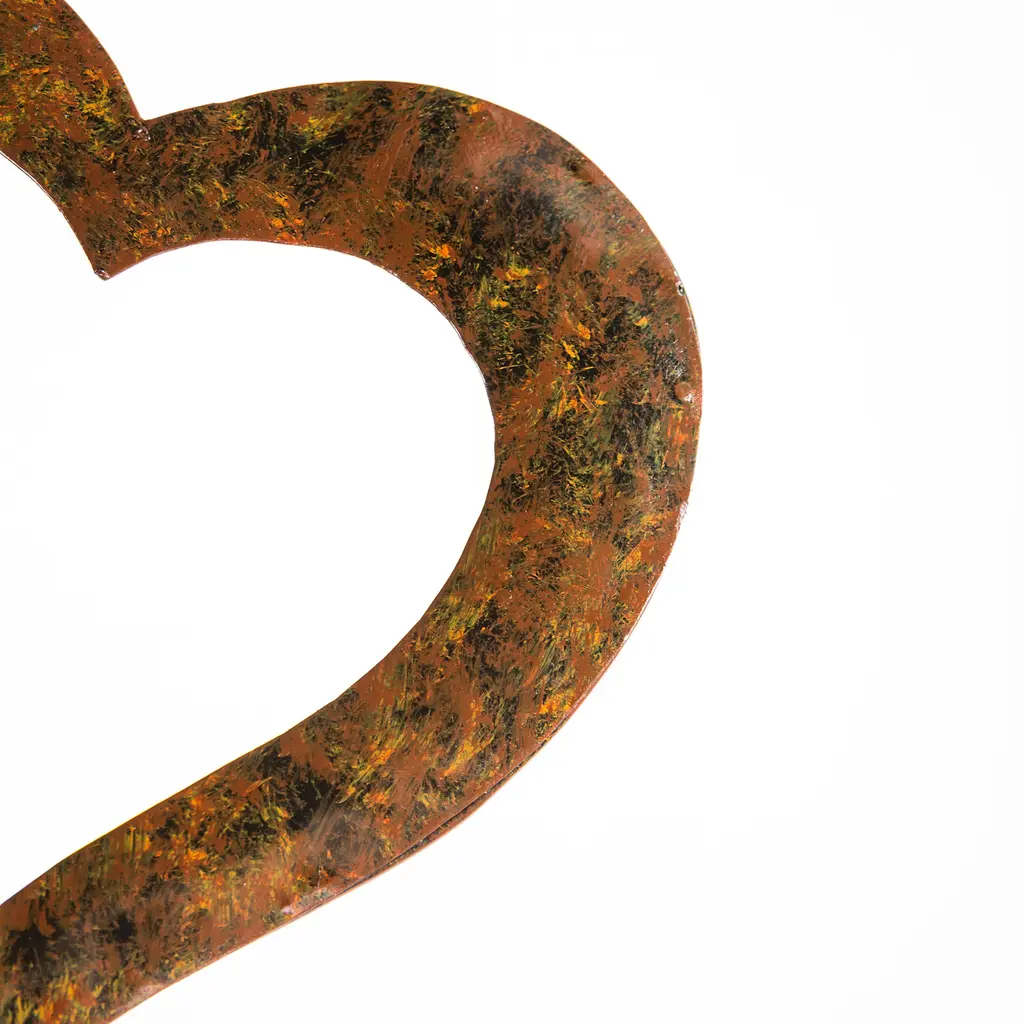 Share some love in your garden with our set of three Handcrafted Metal Heart Decorative Garden Stakes. Handmade by Balinese artisans from a mix of new and reclaimed metal, these lovely metal hearts are hand painted to create a rustic weathered look. Set includes on 25" tall, one 28" tall and one 32" tall. Display them in a group or spread the love around your landscape. Some assembly required.