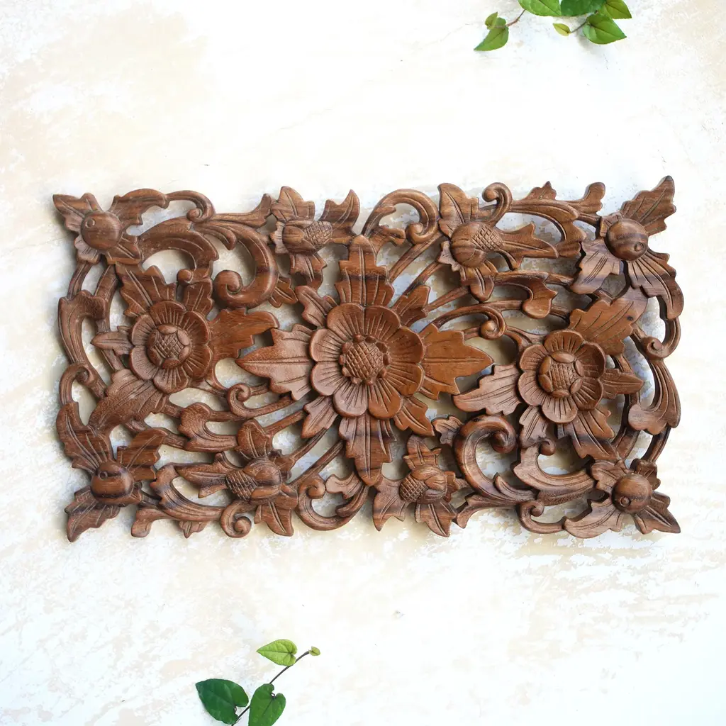 Handcrafted Teak Relief Panel- Blossom Prayer
