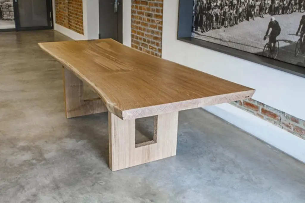 Handgefertigter, rustikaler Unikat Tisch mit natürlicher Baumkante. Fertigung immer in einem Stück aus dem Stamm einer mächtigen Eiche. Die Unterkonstruktion ist aus demselben Stamm kreiert. Es entsteht ein funktionales Kunstwerk, das wir in unserem Atelier in Bayern herstellen. holz elf® verwendet nur Bäume, die durch Stürme entwurzelt wurden oder für ein Bauvorhaben weichen mussten. Diese Eichen sind mehrere hundert Jahre alt und wertvolle Fundstücke. Nach dem sorgfältigen Zuschnitt werden die Holzplatten mehrere Jahre getrocknet, bevor sie in kraftvoller Handarbeit, in vielen aufwändigen Arbeitsschritten zu einzigartigen Kunstwerken verarbeitet werden. Dieser Tisch bringt Kraft und Ausstrahlung in Ihr Zuhause, Ihr Ferienhaus, Ihre Geschäftsräume, Hotels und Yachten. Hier wird gelacht, verhandelt und gegessen. An diesem ökologischen Luxustisch findet das Leben statt.Jeder unserer Tische wird in enger Absprache mit Ihnen gefertigt (Größe, Breite von 200 bis 500 cm, Tiefe von 90 bis 110 cm, Ausführung, Preise werden angepasst). Wir schaffen Tische für Generationen von unschätzbarem Wert. Dafür stehen wir mit unserem Namen.Christa & Christoph Braun