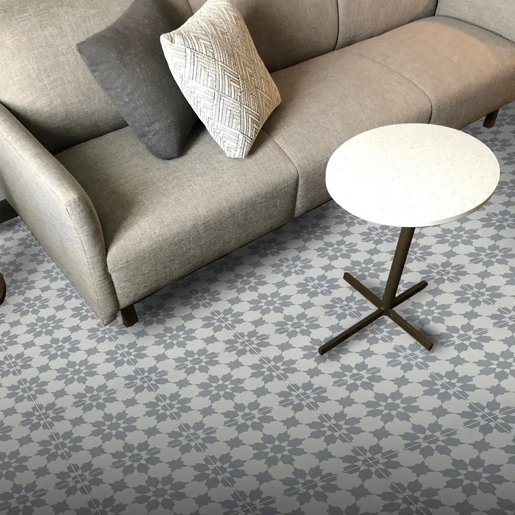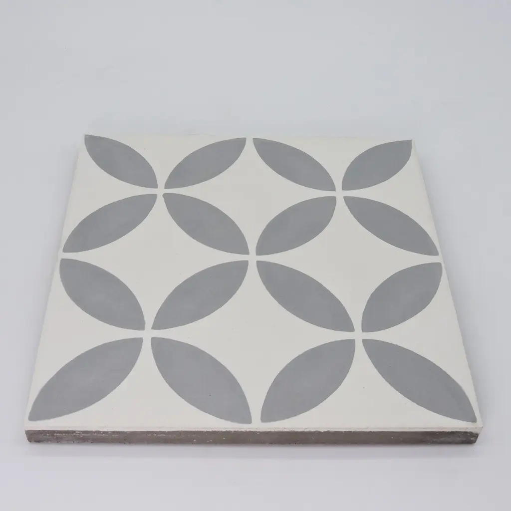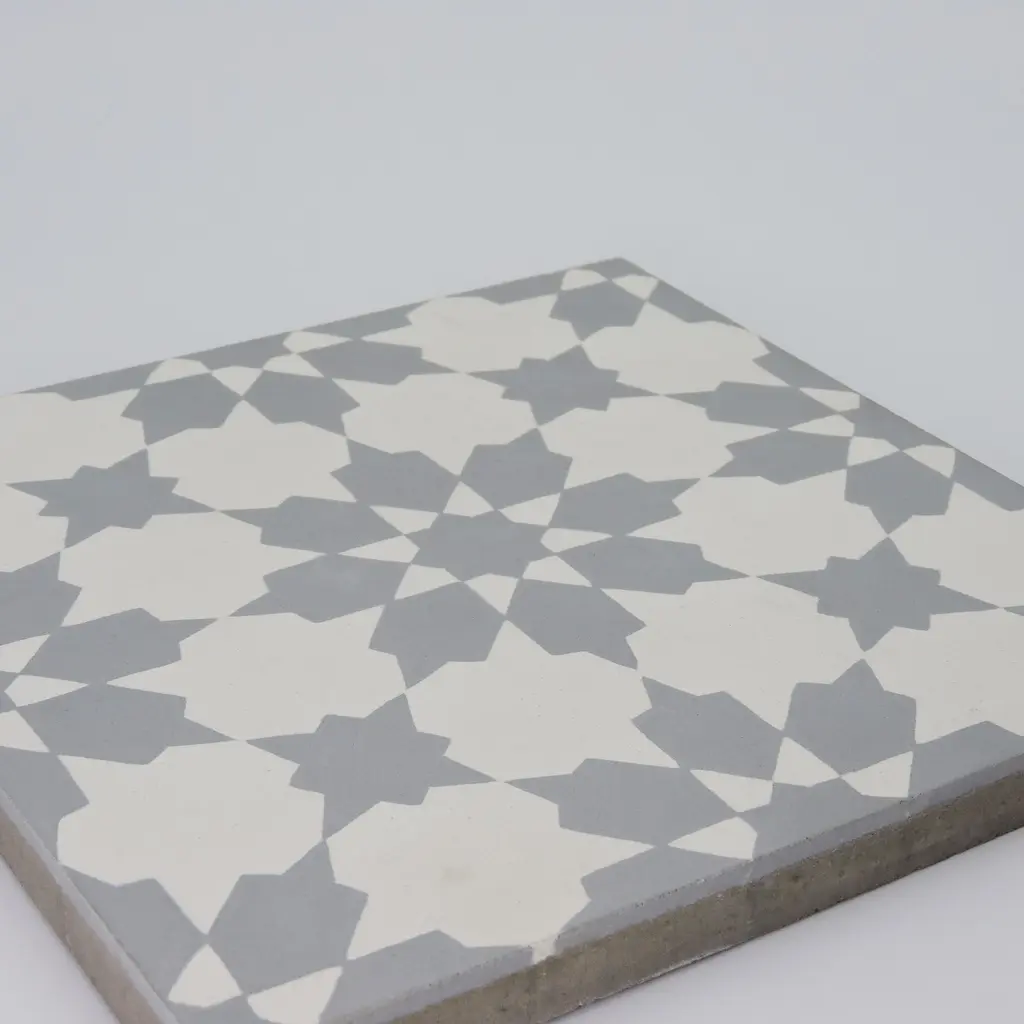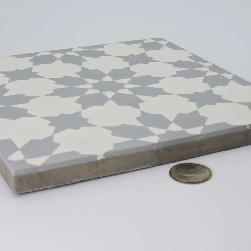 Ahfir is one of our popular tiles, Handmade in Morocco with a unique floral design in a combination of white and grey colors, these tiles are sure to liven up any living space. Each tile measures eight inches square that all together cover a surface area of 5.22 square feet.Product Features:Features:Story Behind the Art:"It's more than tile, it's art." That simple statement is what sets the craftsmanship of Moroccan Mosaic apart from the rest. Based in the small city of Sale, Moroccan Mosaic is a family business going back 4 generations. When Samad, the current head of the business graduated from university in New York, he had little interest in the family business. But on a return trip home, he saw that the business was not doing well and set about reviving it. One important change he made was introducing black, grey, and white designs to appeal to American and European customers. It worked. When he started, they employed 2 workers and now they have nearly 80 on staff. The workshop itself is fairly simple, and the techniques used to create the tiles are steeped in tradition. Some modern equipment is available, though the workers prefer to use the more rustic tools. The creative process is time intensive and done by hand, as Samad insists on no corners be cut or production be rushed. Environmentally responsible and resource efficient, no chemicals are used at any step. For example, colors used come from nature -- literally. Green comes from mint leaves, orange from orange peel, and black from charcoal. The tiles themselves are a simple mixture of cement, sand, and granite powder. Moroccan Mosaic hires only local workers, teaching them a valued skill as well as paying them fair wages. Samad's goals for his business are to share the tradition of gorgeous Moroccan tile, grow the business, and employ more and more workers.The handcrafted touch of artisan skill will create variations in color, size and design. Color differences may occur between the actual product and your computer screen. If buying two of the same item, slight differences will occur from piece to piece.ImportedPlease be aware that if you order more than 151 pounds of tile or flooring, the order may need to be shipped Freight and our Oversized Item Delivery/Return policy will apply.Please click here for more information.