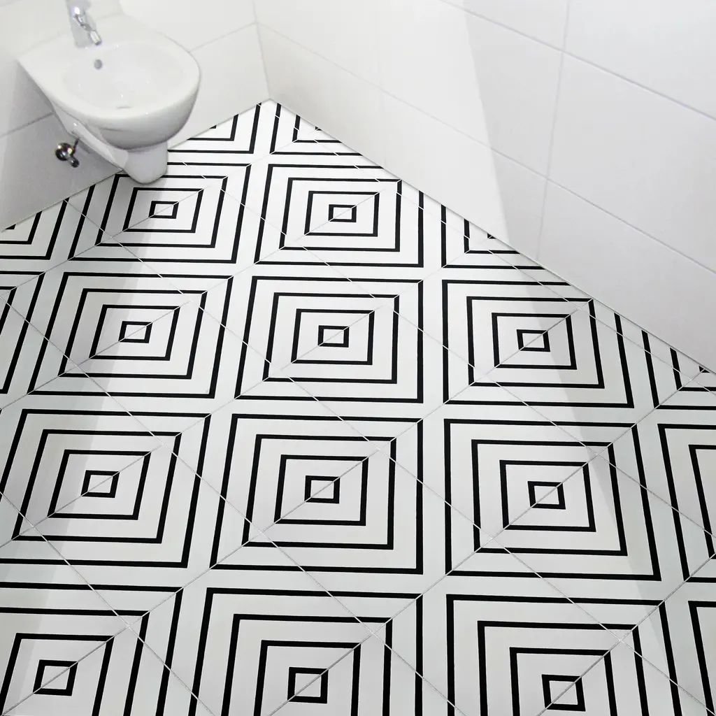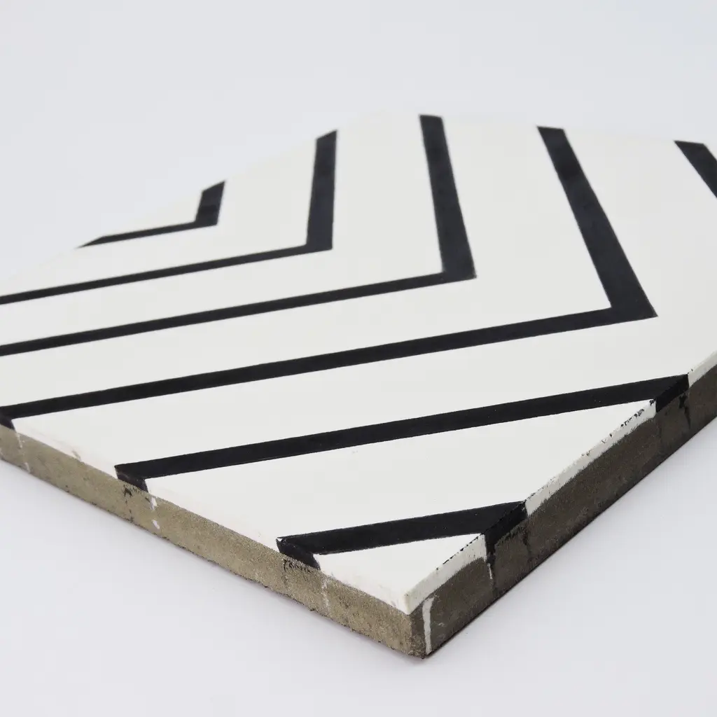 Elevate the look of your home or outdoor space with this pack of twelve Handmade Amlil Moroccan tiles. Each tile is skillfully crafted by master artisans in Morocco using traditional techniques and cement materials. The interlocking geometric pattern in white and black adds a touch of elegance and sophistication to any setting. These eco-friendly tiles are suitable for indoor or outdoor use and are recommended for professional installation.Features:Story Behind the Art: "It's more than tile, it's art." That simple statement is what sets the craftsmanship of Moroccan Mosaic apart from the rest. Based in the small city of Sale, Moroccan Mosaic is a family business going back 4 generations. When Simo, the current head of the business graduated from university in New York, he had little interest in the family business. But on a return trip home, he saw that the business was not doing well and set about reviving it. One important change he made was introducing black, grey, and white designs to appeal to American and European customers. It worked. When he started, they employed 2 workers and now they have nearly 80 on staff. The workshop itself is fairly simple, and the techniques used to create the tiles are steeped in tradition. Some modern equipment is available, though the workers prefer to use the more rustic tools. The creative process is time intensive and done by hand, as Simo insists on no corners be cut or production be rushed. Environmentally responsible and resource efficient, no chemicals are used at any step. For example, colors used come from nature literally. Green comes from mint leaves, orange from orange peel, and black from charcoal. The tiles themselves are a simple mixture of cement, sand, and granite powder. Moroccan Mosaic hires only local workers, teaching them a valued skill as well as paying them fair wages. Simo's goals for his business are to share the tradition of gorgeous Moroccan tile, grow the business, and employ more and more workers.
