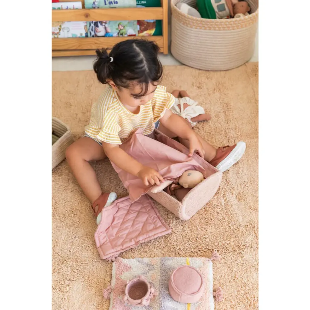 Decor + make believe come together in this adorable storage basket designed like a kitchen oven. Featuring a swinging door, five turning knobs and stove top burners. Handmade and perfect for exploring and playing with it's mini oven mit and canvas pot. Display in a playroom or kids room.