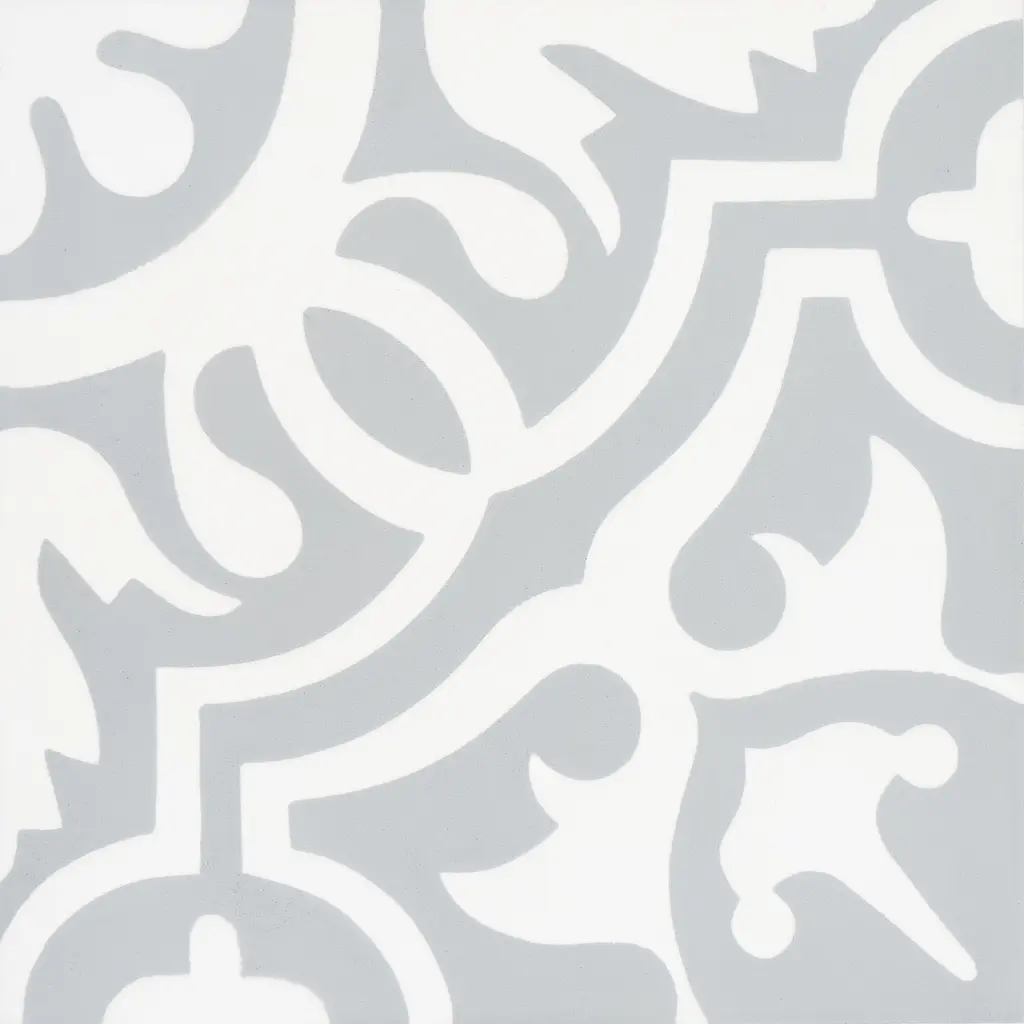 Baha is a traditional cement tile. Its complex pattern will bring life to any dull room. Its grey and white colors offer a more modern look while adding a touch of color without overdoing it. Baha is the perfect tile to bring an overwhelmingly beautiful personality to your home. It will complement any part of your home. Design a dazzling backsplash, floor, or wall with these stunning tiles. Handmade by skilled Moroccan artisans for superior craftsmanship and traditional authenticity. These decorative tiles made from cement are durable indoors and outdoors. Weather-resistant and waterproof, the eco-friendly Moroccan tiles support your commitment to a greener home.Features:· Handmade in Morocco· Decorative floor and wall tiles· Made of cement materials· Professional installation is recommended.· Eco-friendly· Indoor or outdoor use· Geometric pattern· 12 tiles per box, covering 5.22 square feet.· 2.3 tiles per square foot· Each tile measures 8 inches wide x 8 inches longStory Behind the Art: "It's more than tile, it's art." That simple statement is what sets the craftsmanship of Moroccan Mosaic apart from the rest. Based in the small city of Sale, Moroccan Mosaic is a family business going back 4 generations. When Simo, the current head of the business graduated from university in New York, he had little interest in the family business. But on a return trip home, he saw that the business was not doing well and set about reviving it. One important change he made was introducing black, grey, and white designs to appeal to American and European customers. It worked. When he started, they employed 2 workers and now they have nearly 80 on staff. The workshop itself is fairly simple, and the techniques used to create the tiles are steeped in tradition. Some modern equipment is available, though the workers prefer to use the more rustic tools. The creative process is time intensive and done by hand, as Simo insists on no corners be cut or production be rushed. Environmentally responsible and resource efficient, no chemicals are used at any step. For example, colors used come from nature literally. Green comes from mint leaves, orange from orange peel, and black from charcoal. The tiles themselves are a simple mixture of cement, sand, and granite powder. Moroccan Mosaic hires only local workers, teaching them a valued skill as well as paying them fair wages. Simo's goals for his business are to share the tradition of gorgeous Moroccan tile, grow the business, and employ more and more workers.