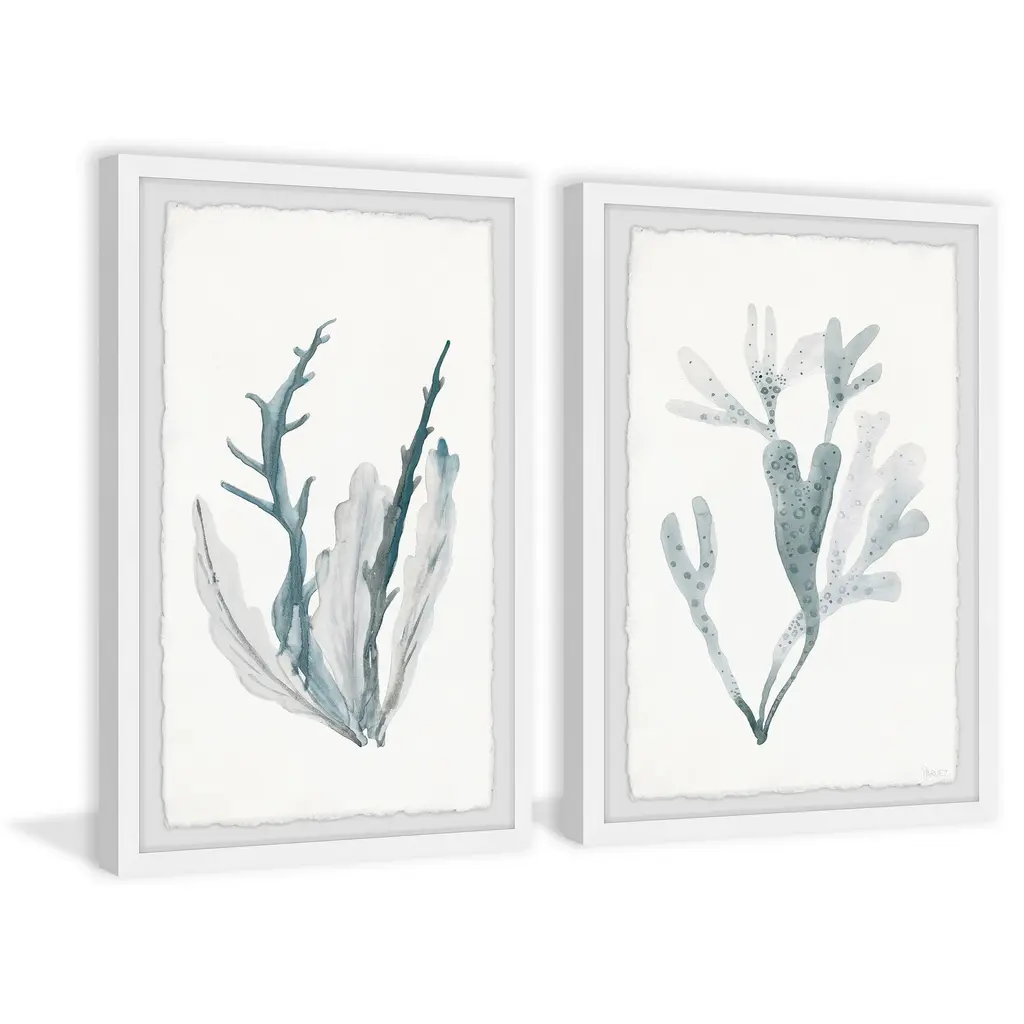 Handmade Corals In Blue Diptych - Multi-Color - 2Pcs Of 8X12