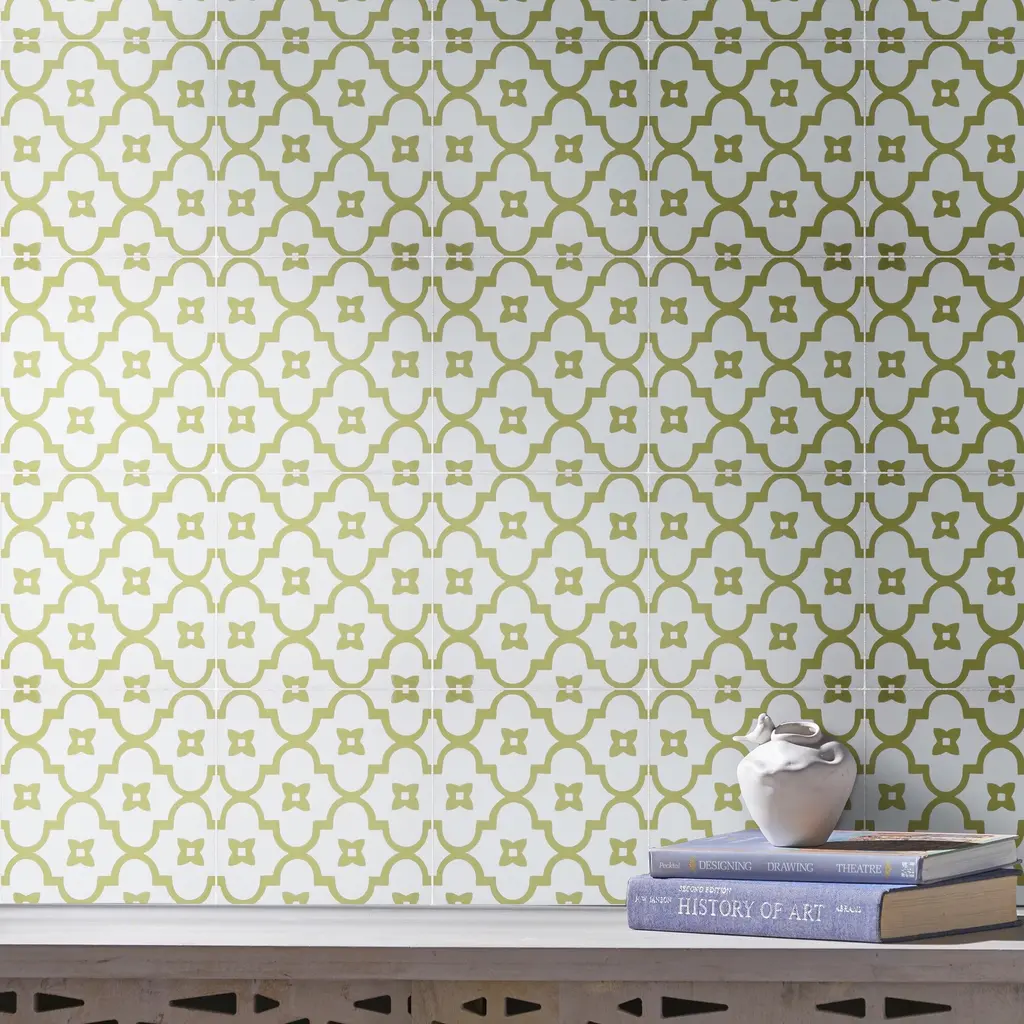 Replace your old, floor or wall tile with this pack of twelve cement tiles. Add some uniqueness to any room in your home. Handmade in Morocco with a unique geometric design in a combination of white and gold colors, these tiles are sure to liven up any living space. Each tile measures eight inches square that all together cover a surface area of 5.22 square feet. Product Features: Features:Story Behind the Art: "It's more than tile, it's art." That simple statement is what sets the craftsmanship of Moroccan Mosaic apart from the rest. Based in the small city of Sale, Moroccan Mosaic is a family business going back 4 generations. When Simo, the current head of the business graduated from university in New York, he had little interest in the family business. But on a return trip home, he saw that the business was not doing well and set about reviving it. One important change he made was introducing black, grey, and white designs to appeal to American and European customers. It worked. When he started, they employed 2 workers and now they have nearly 80 on staff. The workshop itself is fairly simple, and the techniques used to create the tiles are steeped in tradition. Some modern equipment is available, though the workers prefer to use the more rustic tools. The creative process is time intensive and done by hand, as Simo insists on no corners be cut or production be rushed. Environmentally responsible and resource efficient, no chemicals are used at any step. For example, colors used come from nature literally. Green comes from mint leaves, orange from orange peel, and black from charcoal. The tiles themselves are a simple mixture of cement, sand, and granite powder. Moroccan Mosaic hires only local workers, teaching them a valued skill as well as paying them fair wages. Simo's goals for his business are to share the tradition of gorgeous Moroccan tile, grow the business, and employ more and more workers The handcrafted touch of artisan skill will create variations in color, size and design. Color differences may occur between the actual product and your computer screen. If buying two of the same item, slight differences will occur from piece to piece.