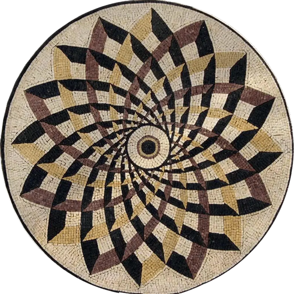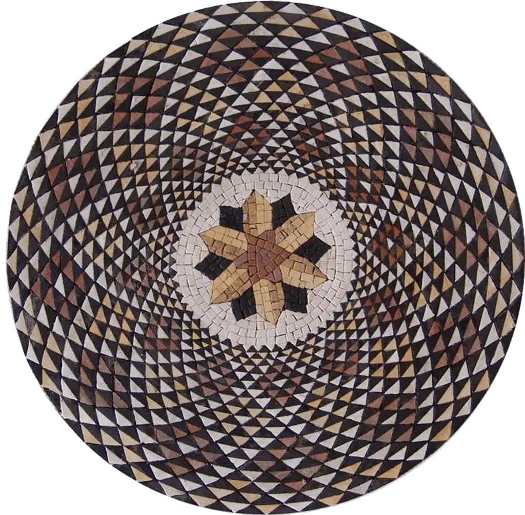 Our Bombay handmade marble mosaic showcases a unique star center wrapped in a crescendo of triangles descending in size. The multicolored medallion makes a mesmerizing modern mosaic table top or counter top. Custom order it in the right size for your decorative tiles project.