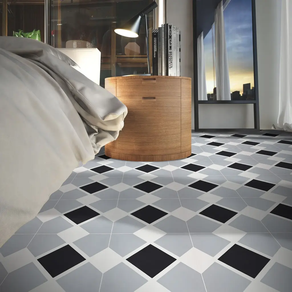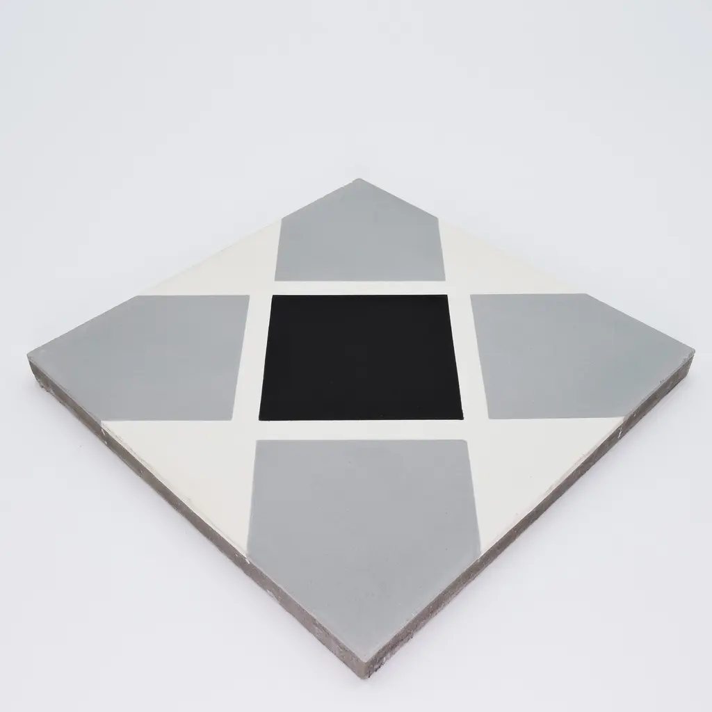 Spruce up the look of your home or patio with this pack of twelve Moroccan tiles. Handmade by master craftsmen in Morocco, these tiles can be placed on your floor or walls inside or outside your home. The tiles feature an attractive yet playful interlinking black, grey, and white geometric pattern.Features:· Handmade in Morocco· Decorative floor and wall tiles· Made of cement materials· Professional installation is recommended.· Tiles need to be sealed before and after grouting.· Eco-friendly· Indoor or outdoor use· Geometric pattern· When ordering a box, 12 tiles come included. Sample is just 1 tile.· 12 tiles per box, covering 5.22 square feet.· 2.3 tiles per square foot· Each tile measures 8 inches wide x 8 inches longStory Behind the Art:"It's more than tile, it's art." That simple statement is what sets the craftsmanship of Moroccan Mosaic apart from the rest. Based in the small city of Sale, Moroccan Mosaic is a family business going back 4 generations. When Simo, the current head of the business graduated from university in New York, he had little interest in the family business. But on a return trip home, he saw that the business was not doing well and set about reviving it. One important change he made was introducing black, grey, and white designs to appeal to American and European customers. It worked. When he started, they employed 2 workers and now they have nearly 80 on staff. The workshop itself is fairly simple, and the techniques used to create the tiles are steeped in tradition. Some modern equipment is available, though the workers prefer to use the more rustic tools. The creative process is time intensive and done by hand, as Simo insists on no corners be cut or production be rushed. Environmentally responsible and resource efficient, no chemicals are used at any step. For example, colors used come from nature literally. Green comes from mint leaves, orange from orange peel, and black from charcoal. The tiles themselves are a simple mixture of cement, sand, and granite powder. Moroccan Mosaic hires only local workers, teaching them a valued skill as well as paying them fair wages. Simo's goals for his business are to share the tradition of gorgeous Moroccan tile, grow the business, and employ more and more workers.