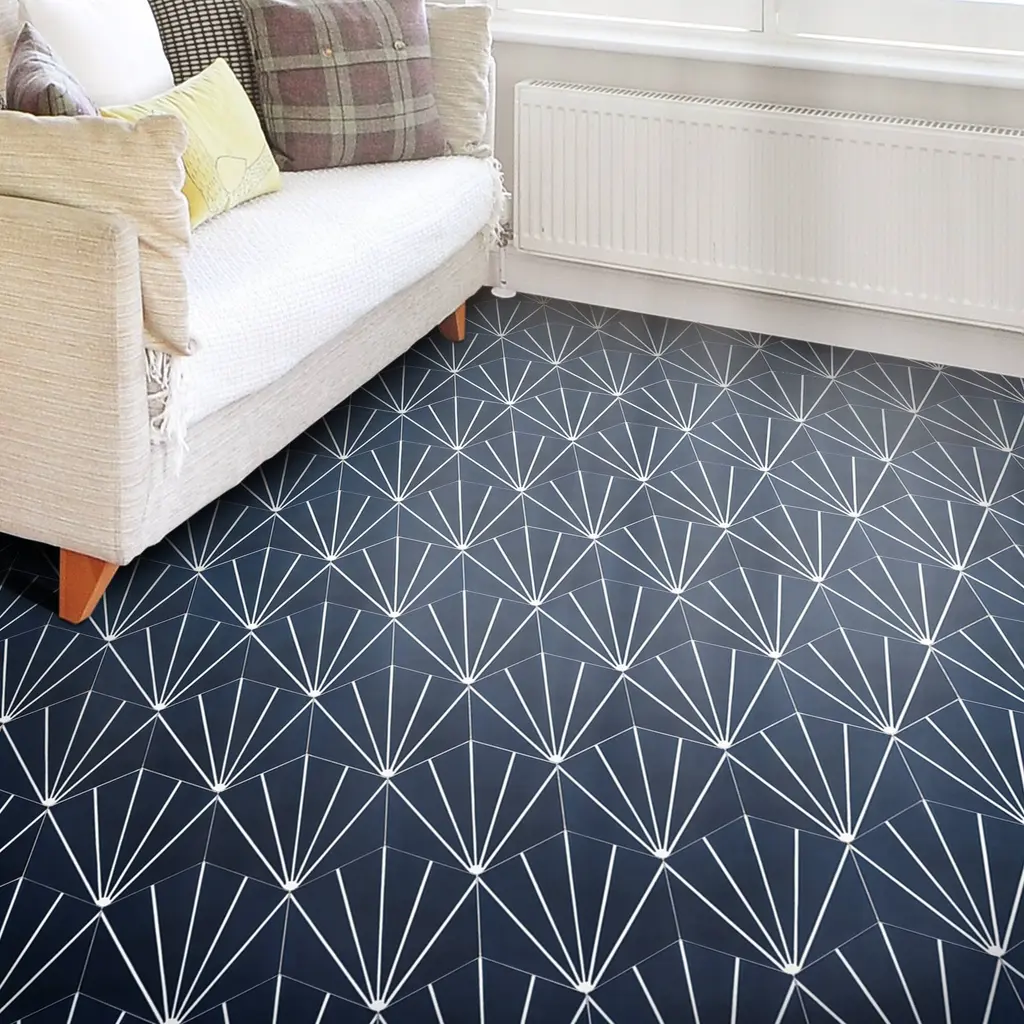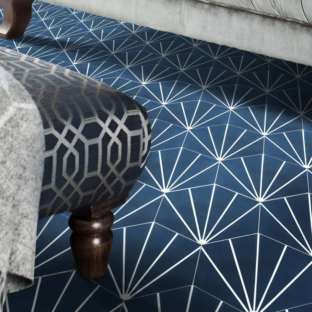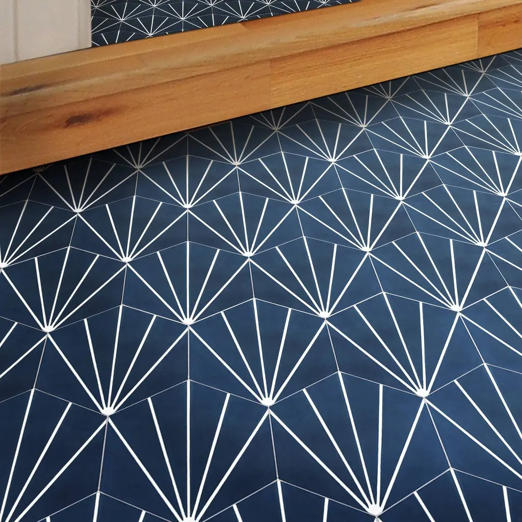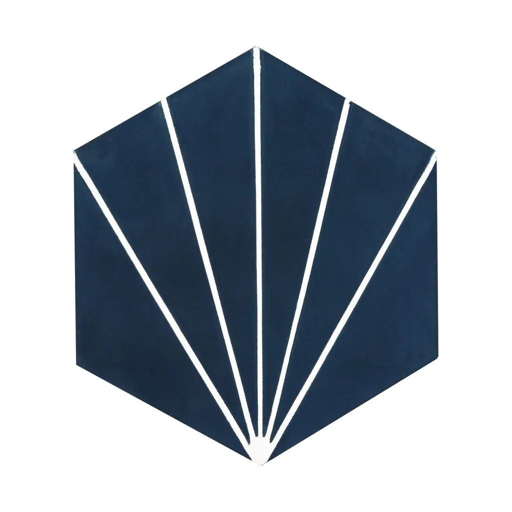 Add a touch of Moroccan style to your indoor or outdoor space with these Handmade Menara tiles. The navy blue and white geometric pattern is perfect for any décor, traditional or modern. These eco-friendly tiles are crafted by skilled artisans in Morocco using resource-efficient methods. Each tile is handmade and may vary slightly in size, color, and design, adding to their unique charm. These versatile tiles can be used on floors and walls in commercial or residential spaces.Features:Story Behind the Art: "It's more than tile, it's art." That simple statement is what sets the craftsmanship of Moroccan Mosaic apart from the rest. Based in the small city of Sale, Moroccan Mosaic is a family business going back 4 generations. When Simo, the current head of the business graduated from university in New York, he had little interest in the family business. But on a return trip home, he saw that the business was not doing well and set about reviving it. One important change he made was introducing black, grey, and white designs to appeal to American and European customers. It worked. When he started, they employed 2 workers and now they have nearly 80 on staff. The workshop itself is fairly simple, and the techniques used to create the tiles are steeped in tradition. Some modern equipment is available, though the workers prefer to use the more rustic tools. The creative process is time intensive and done by hand, as Simo insists on no corners be cut or production be rushed. Environmentally responsible and resource efficient, no chemicals are used at any step. For example, colors used come from nature literally. Green comes from mint leaves, orange from orange peel, and black from charcoal. The tiles themselves are a simple mixture of cement, sand, and granite powder. Moroccan Mosaic hires only local workers, teaching them a valued skill as well as paying them fair wages. Simo's goals for his business are to share the tradition of gorgeous Moroccan tile, grow the business, and employ more and more workers.