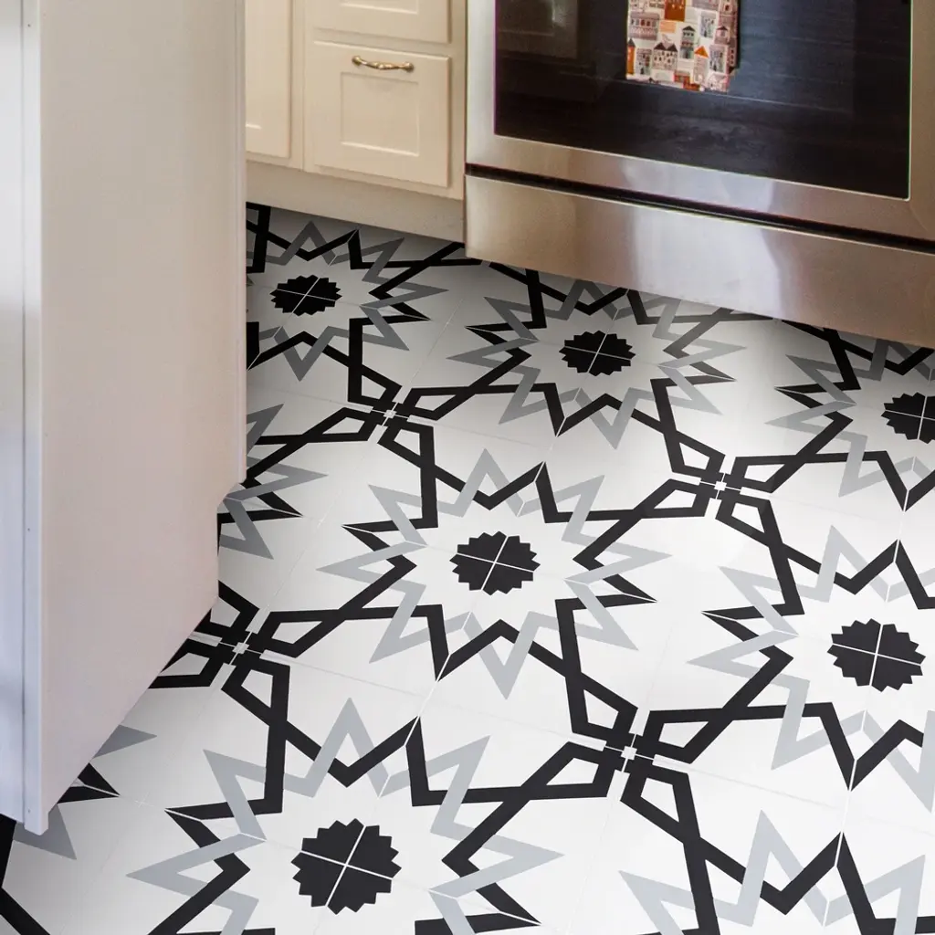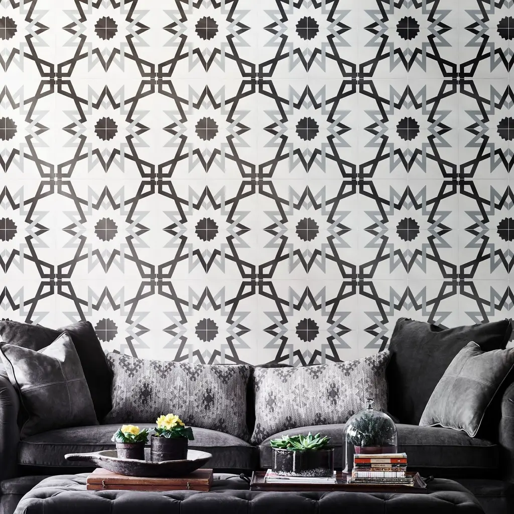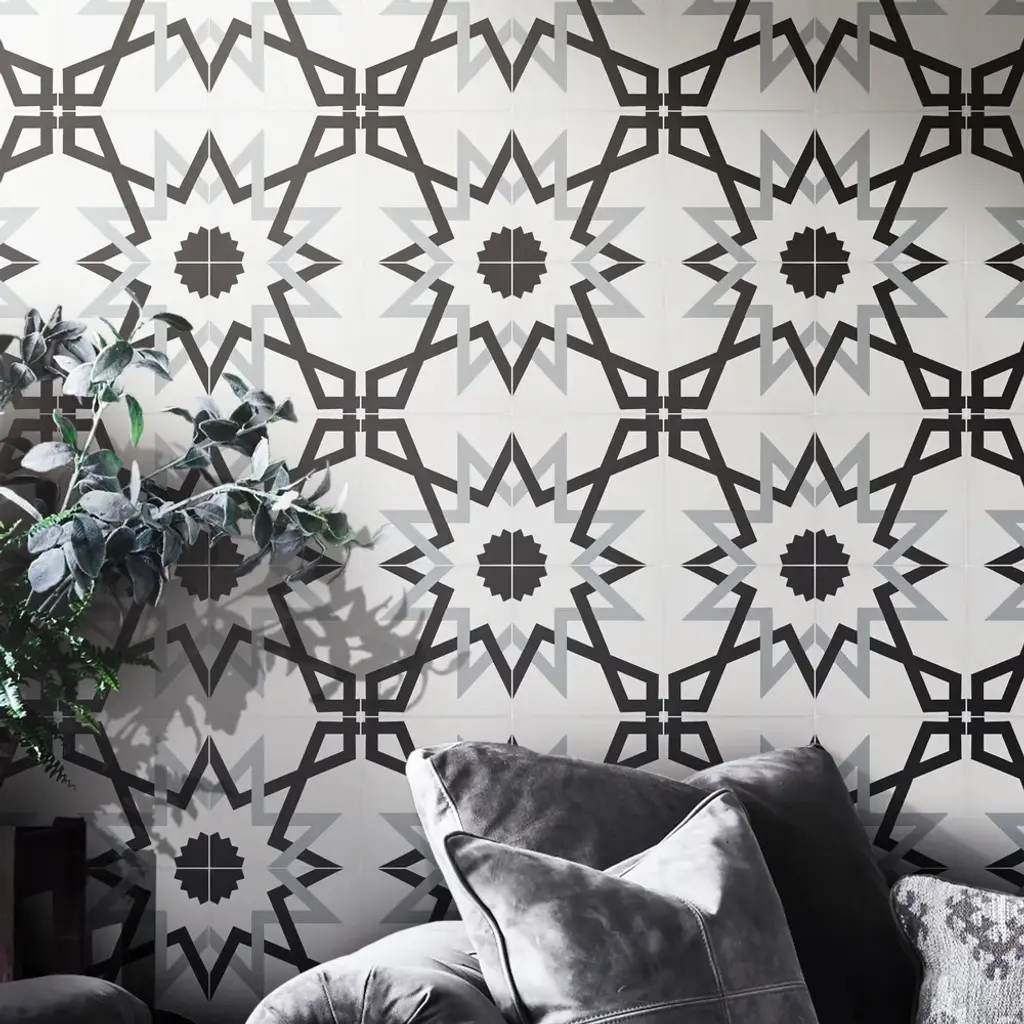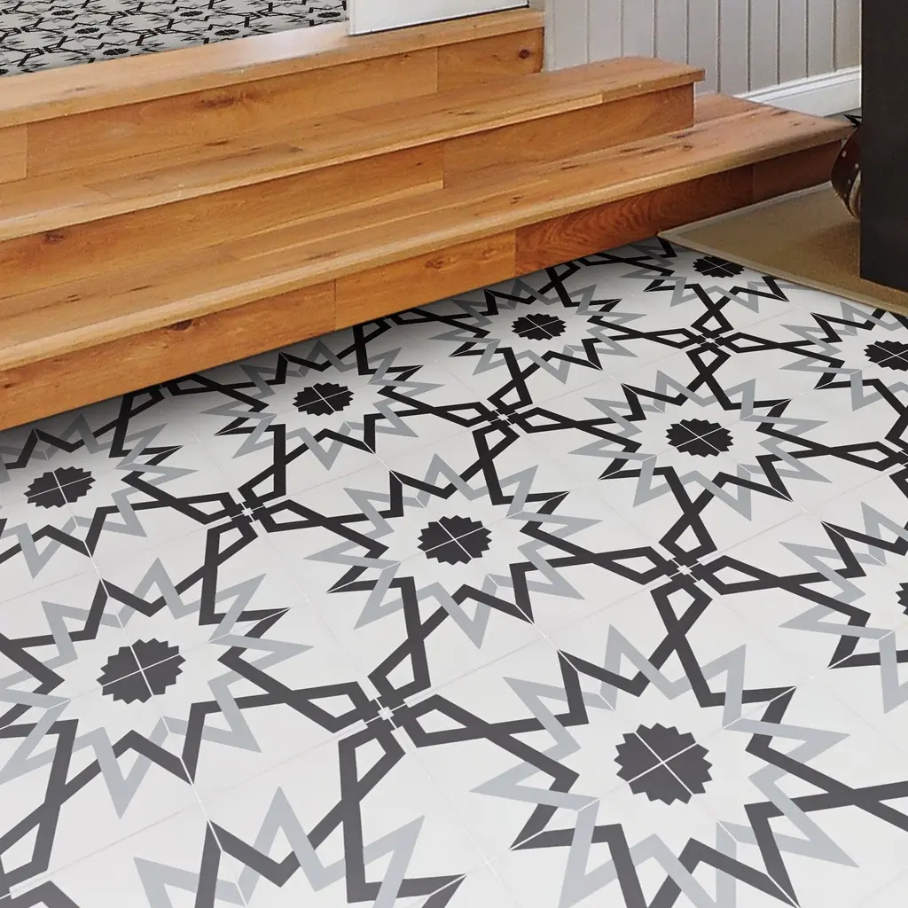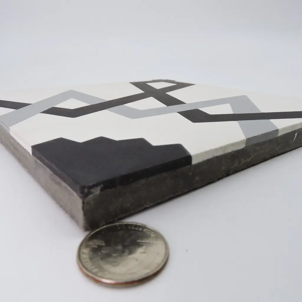 Design a dazzling backsplash, floor, or wall with these stunning tiles. Handmade by skilled Moroccan artisans for superior craftsmanship and traditional authenticity. These decorative tiles made from cement are durable indoors and outdoors. Weather-resistant and waterproof, the eco-friendly Moroccan tiles support your commitment to a greener home.· Features:· Handmade in Morocco· Moroccan Mosaic and Tile House Brand· Decorative floor and wall tiles· Made of cement materials· Professional installation is recommended.· Tiles need to be sealed before and after grouting.· Eco-friendly· Indoor or outdoor use· Geometric pattern· When ordering a box, 12 tiles come included. Sample is just 1 tile.· 12 tiles per box, covering 5.22 square feet.· 2.3 tiles per square foot· Each tile measures 8 inches wide x 8 inches long· Story Behind the Art: "It's more than tile, it's art." That simple statement is what sets the craftsmanship of Moroccan Mosaic apart from the rest. Based in the small city of Sale, Moroccan Mosaic is a family business going back 4 generations. When Simo, the current head of the business graduated from university in New York, he had little interest in the family business. But on a return trip home, he saw that the business was not doing well and set about reviving it. One important change he made was introducing black, grey, and white designs to appeal to American and European customers. It worked. When he started, they employed 2 workers and now they have nearly 80 on staff. The workshop itself is fairly simple, and the techniques used to create the tiles are steeped in tradition. Some modern equipment is available, though the workers prefer to use the more rustic tools. The creative process is time intensive and done by hand, as Simo insists on no corners be cut or production be rushed. Environmentally responsible and resource efficient, no chemicals are used at any step. For example, colors used come from nature literally. Green comes from mint leaves, orange from orange peel, and black from charcoal. The tiles themselves are a simple mixture of cement, sand, and granite powder. Moroccan Mosaic hires only local workers, teaching them a valued skill as well as paying them fair wages. Simo's goals for his business are to share the tradition of gorgeous Moroccan tile, grow the business, and employ more and more workers.