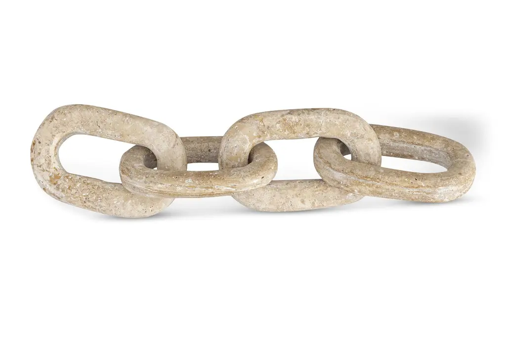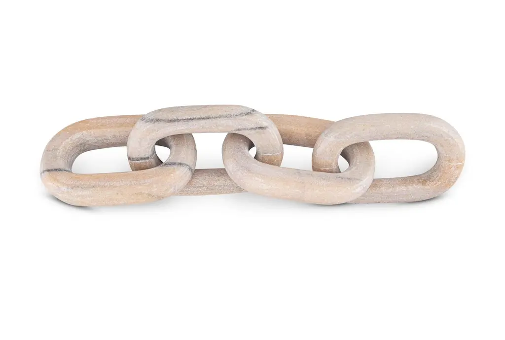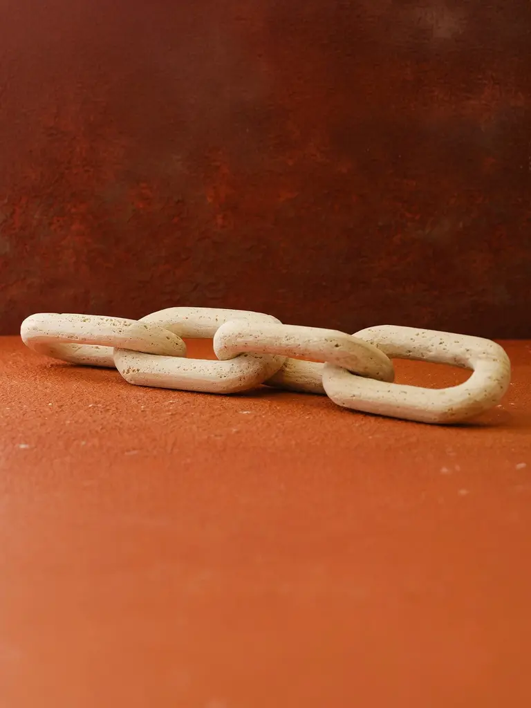 The Travertine Decorative Chain is a tactile, sculptural object that adds subtle strength and texture to modern interiors. Hand-carved from solid beige travertine, this piece features five smoothly honed, interlocking oval links—each one a celebration of material weight and minimalist rhythm. Draped across books, laid within trays, or displayed on shelves, the chain introduces movement, form, and raw elegance to your space. Its soft matte finish and natural veining make each chain completely one of a kind.