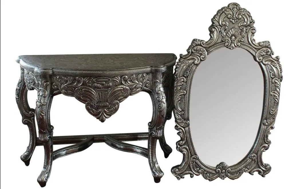 Handmade Vanity & Mirror Set In Silver - Set Of 2