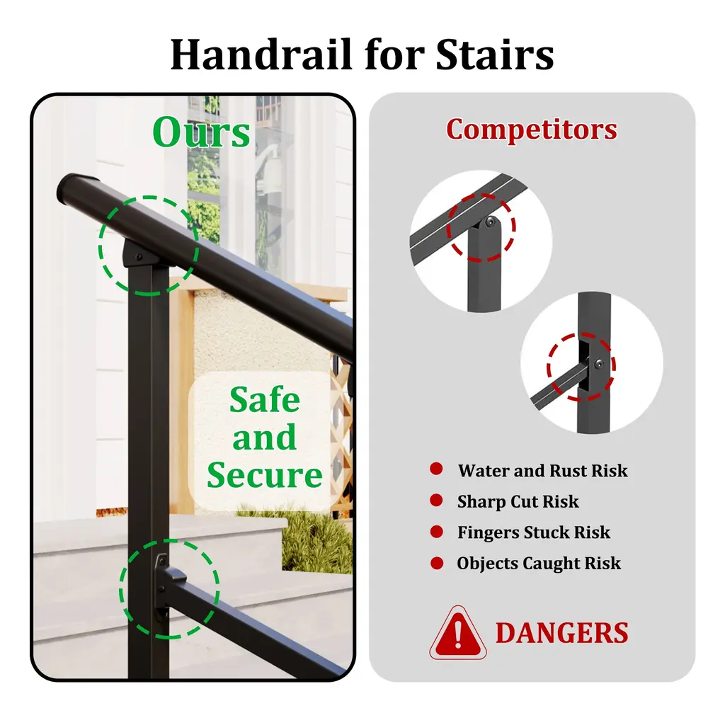 Our outdoor stair handrails provide extra safety for all types of people who use stairs. Whether it is the elderly with limited mobility, children who have difficulty climbing stairs, or other people with limited mobility, they can rely on this sturdy and durable handrail for stable support and protection. Made of high-quality materials, this handrail can withstand the test of various weather conditions.Feature:[Unique Design] Our stair handrail has a unique design concept, which has been rigorously tested and verified to provide users with reliable support. Its exquisite craftsmanship and high-quality materials ensure the durability and safety of the handrail.[Safe and Durable] Our handrails are carefully built to meet strict construction standards, our handrail kits ensure consistency and durability. They are designed to withstand significant loads.[Wide Application] Our handrails are not only suitable for indoor and outdoor stairs, but also multi-functional stair handrails for commercial, industrial and residential projects, thereby increasing safety and accessibility.[Easy to maintain] This handrail is not only durable, but also easy to clean and maintain. The handrail surface is treated with professional grade treatment to make it smoother and easier to remove dust.[Easy to Install] Our carefully packaged stair handrails include all the tools, parts and hardware needed for assembly. A detailed installation guide is also included to help you install the handrail in a short time.