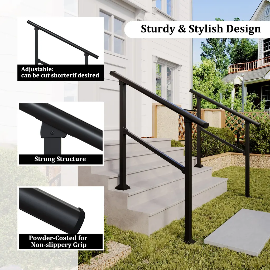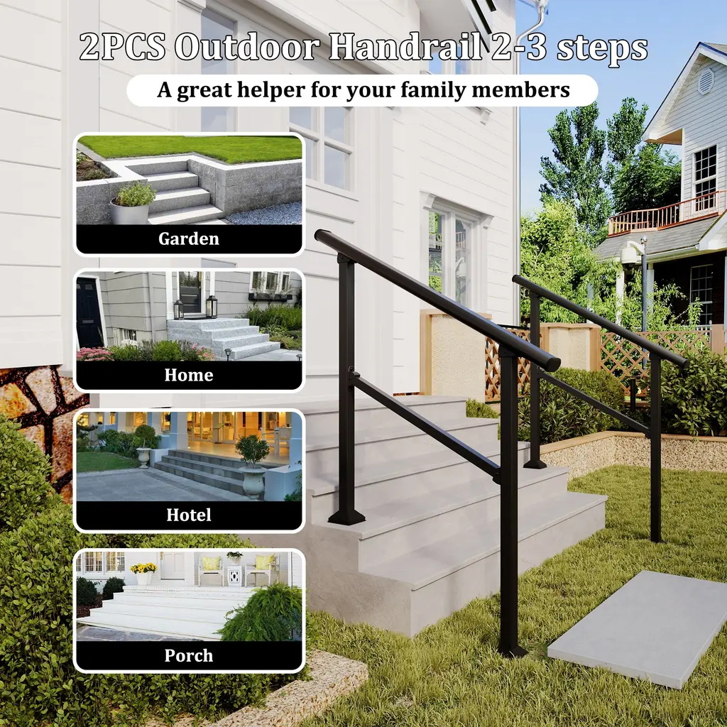 Handrails For Outdoor Steps Fit 1-5 Steps(set Of 2) - 2-3Steps