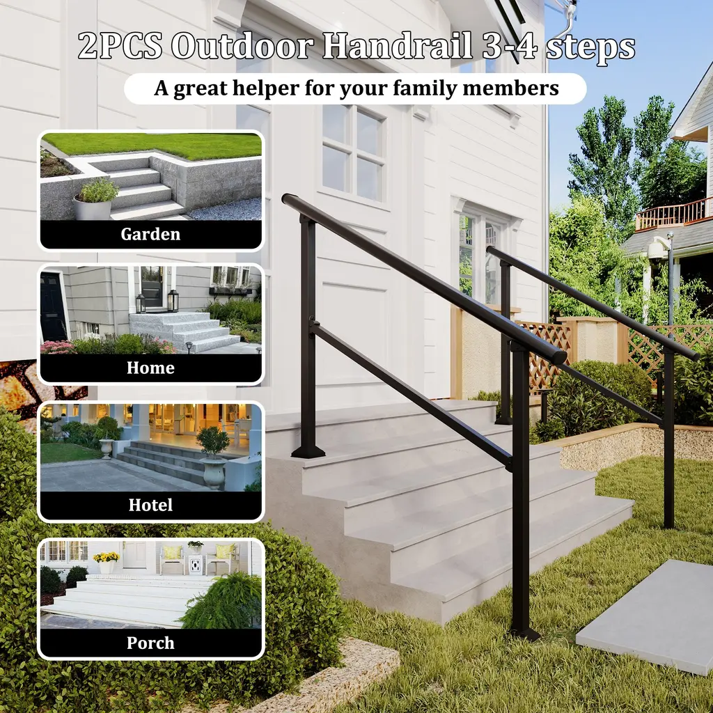 Handrails For Outdoor Steps Fit 1-5 Steps(set Of 2) - 3-4Steps