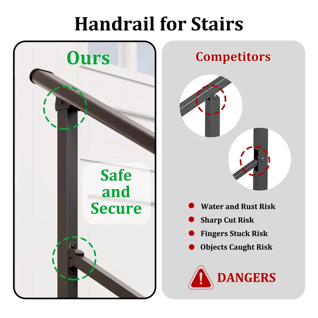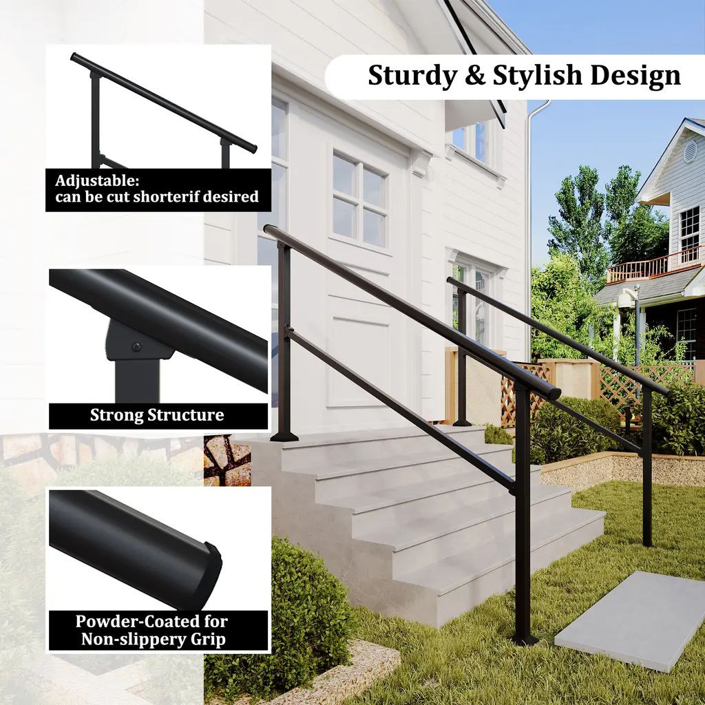 Our outdoor stair handrails provide extra safety for all types of people who use stairs. Whether it is the elderly with limited mobility, children who have difficulty climbing stairs, or other people with limited mobility, they can rely on this sturdy and durable handrail for stable support and protection. Made of high-quality materials, this handrail can withstand the test of various weather conditions.Feature:[Unique Design] Our stair handrail has a unique design concept, which has been rigorously tested and verified to provide users with reliable support. Its exquisite craftsmanship and high-quality materials ensure the durability and safety of the handrail.[Safe and Durable] Our handrails are carefully built to meet strict construction standards, our handrail kits ensure consistency and durability. They are designed to withstand significant loads.[Wide Application] Our handrails are not only suitable for indoor and outdoor stairs, but also multi-functional stair handrails for commercial, industrial and residential projects, thereby increasing safety and accessibility.[Easy to maintain] This handrail is not only durable, but also easy to clean and maintain. The handrail surface is treated with professional grade treatment to make it smoother and easier to remove dust.[Easy to Install] Our carefully packaged stair handrails include all the tools, parts and hardware needed for assembly. A detailed installation guide is also included to help you install the handrail in a short time.