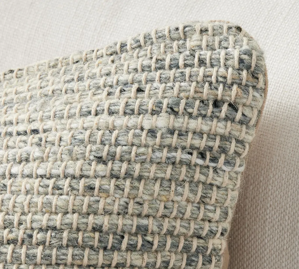 Cool, heathered hues immediately relax a space. Woven by hand of a wool/cotton blend, this offers a casual look with plenty of texture. Its neutral palette pairs well with others, easily complimenting your existing pillowscape.