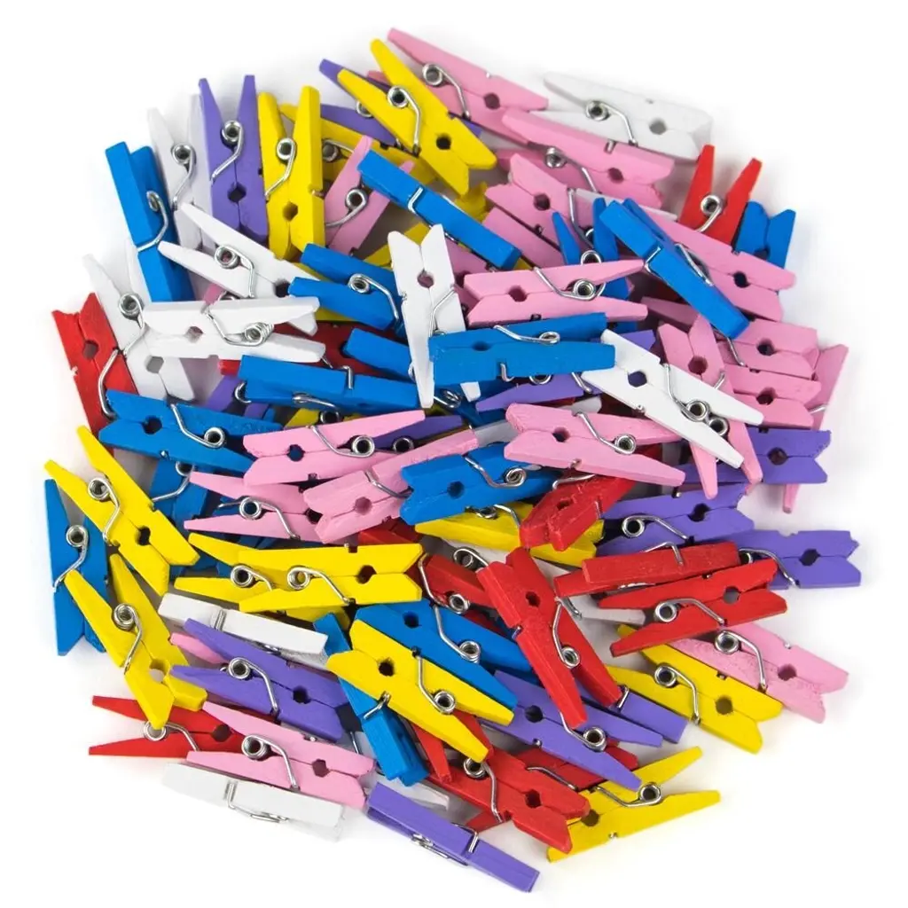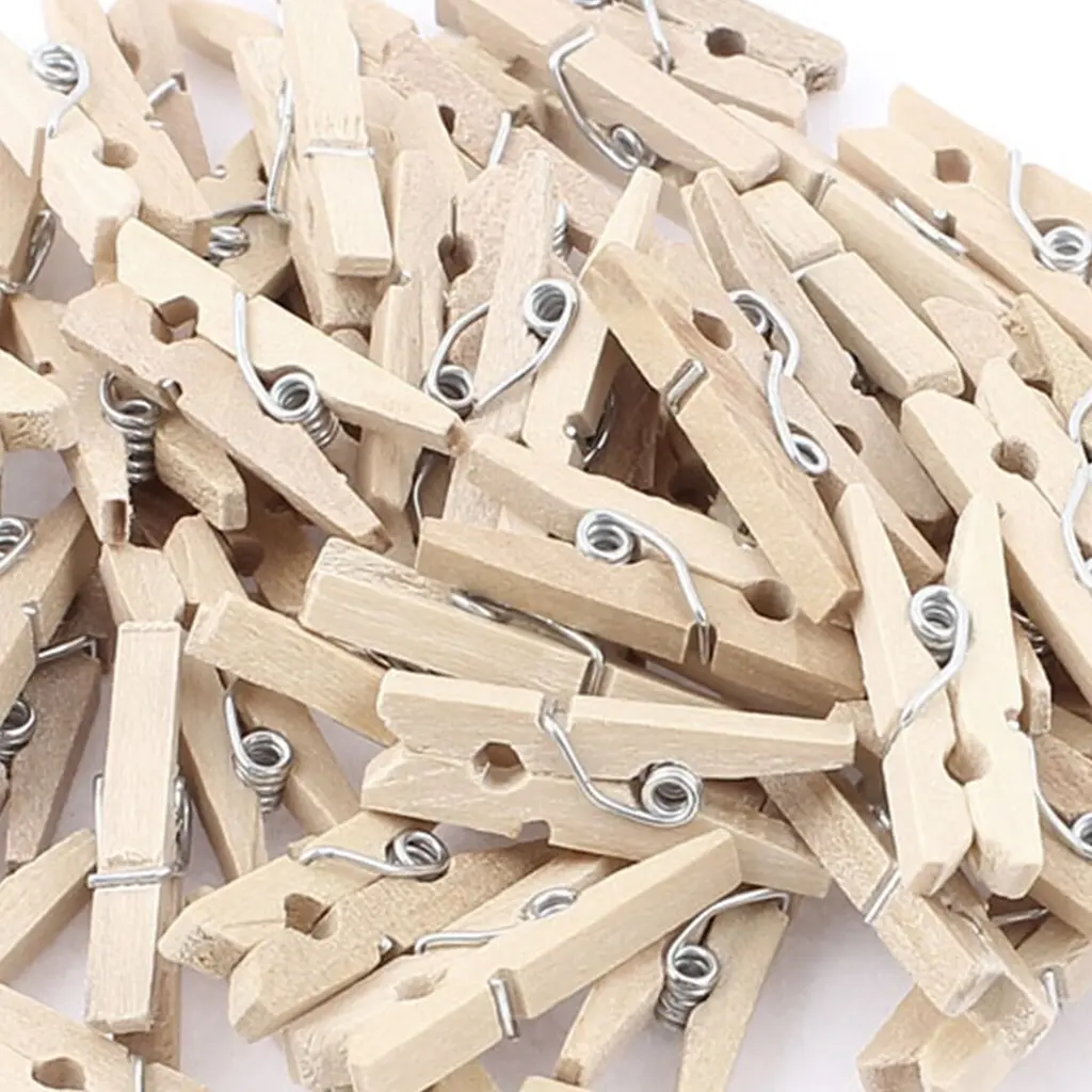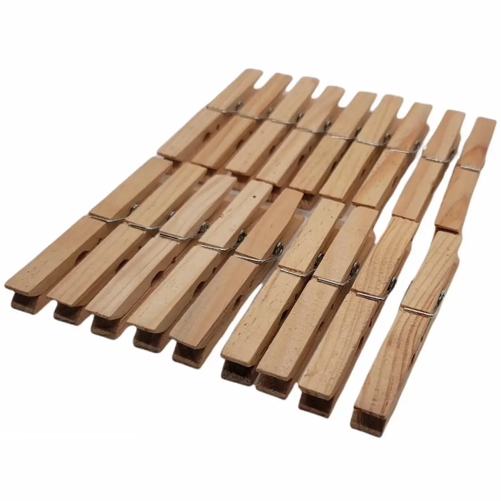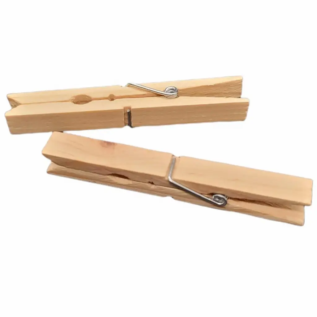 Great for arts, crafts, hanging clothes and papers, this 18-piece Wooden Clothespins Set is easy to use and extremely light. Dimensions are approximately 3 7/8" x 5/8" x 5/8".