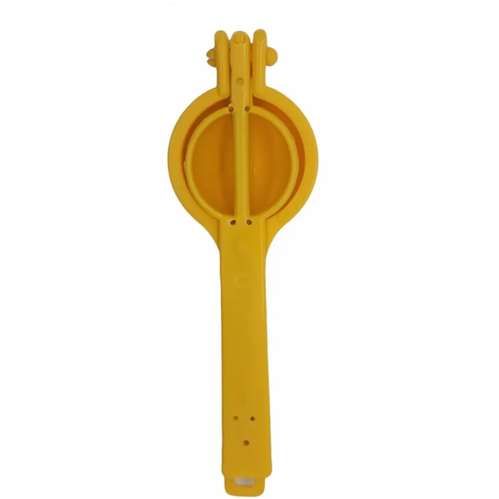 A kitchen essential, this convenient Lemon Squeezer juices lemons with ease and works great on other citrus fruits as well.Squeezer is made with durable plastic with an inner metal rod.Measures approximately 8" long when closed and 15" when open. Handle width and depth are 7/8". The squeezer diameter is approximately 2 1/2" with a depth of 1 3/8".
