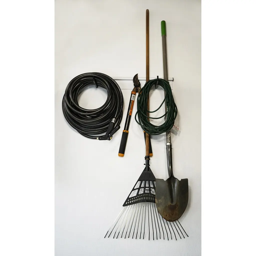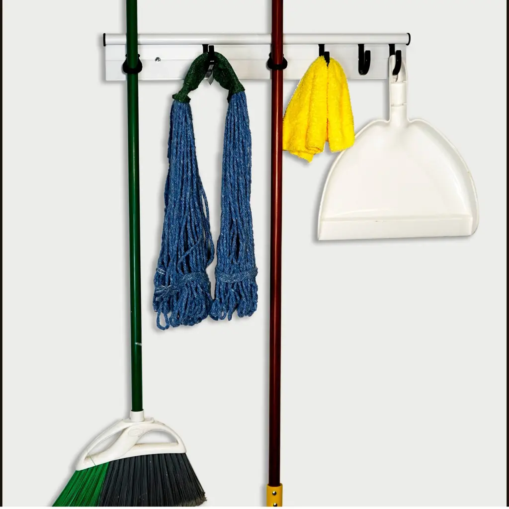 Revolutionize your storage space with the Hang It Simple Wall Mounted Universal Storage Hanger! This versatile system features an extruded plastic rail with sliding hooks that adjust to your needs, making it perfect for organizing cleaning tools, gardening tools, sports equipment, towels, coats, and more. The slide-in and slide-out design allows for quick access, while the rubber teardrop grip securely holds mops, brooms, and long-handled tools of almost any size. Ideal for garages, kitchens, broom closets, offices, and even trailers, this space-saving solution helps you declutter and maximize your space efficiently. Customizable storage with sliding hooks for easy adjustments Rubber teardrop grip hooks (2 incl) secures mops, brooms, and long-handled tools Small plastic hooks (2 incl) hold tools, towels, coats, bags, and pet leashes Large plastic hook (1 incl) accommodates garden tools, sports equipment, and more Ideal for garages, kitchens, laundry rooms, boats and trailers Space-saving design frees up valuable floor space Easy installation with included mounting hardware