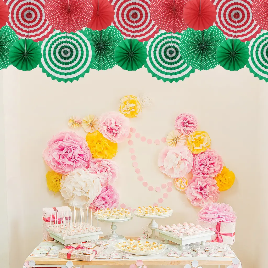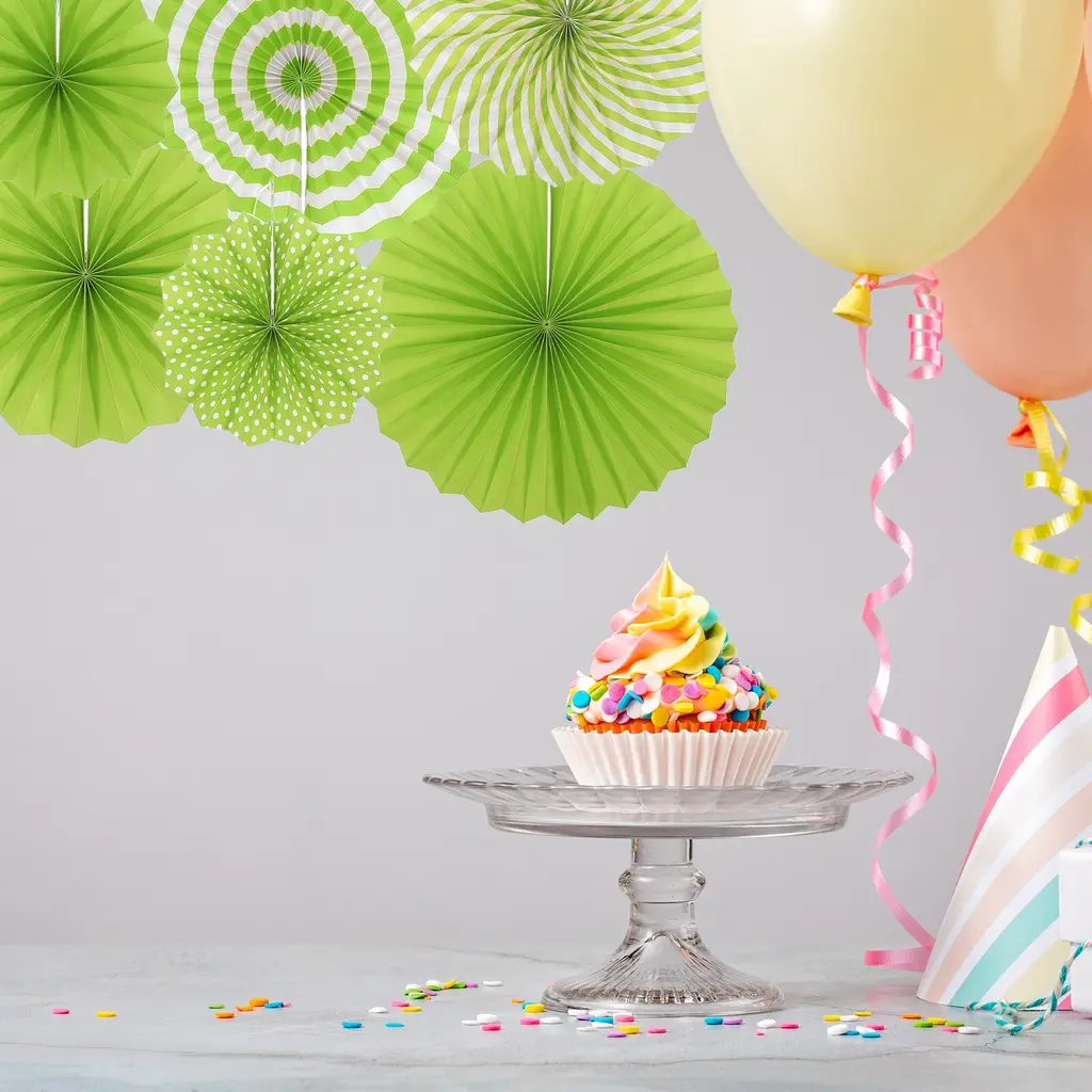 Hanging Paper Fans Party Set 12pcs Decoration For Home,birthday,wedding Green - Green