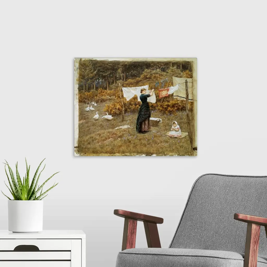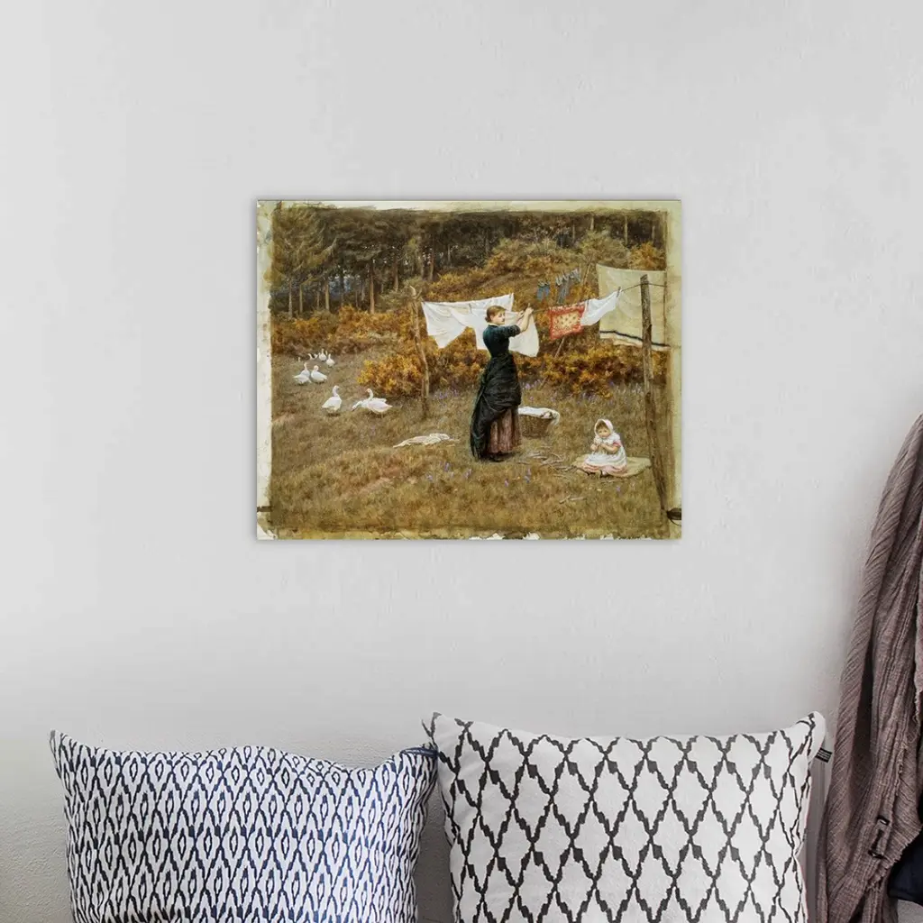 Hanging The Washing, A Beautiful Spring Morning wall art for home and office decor. Discover canvas art prints, photos, mural, big canvas art and framed wall art in GreatBigCanvas.com's varied collections.