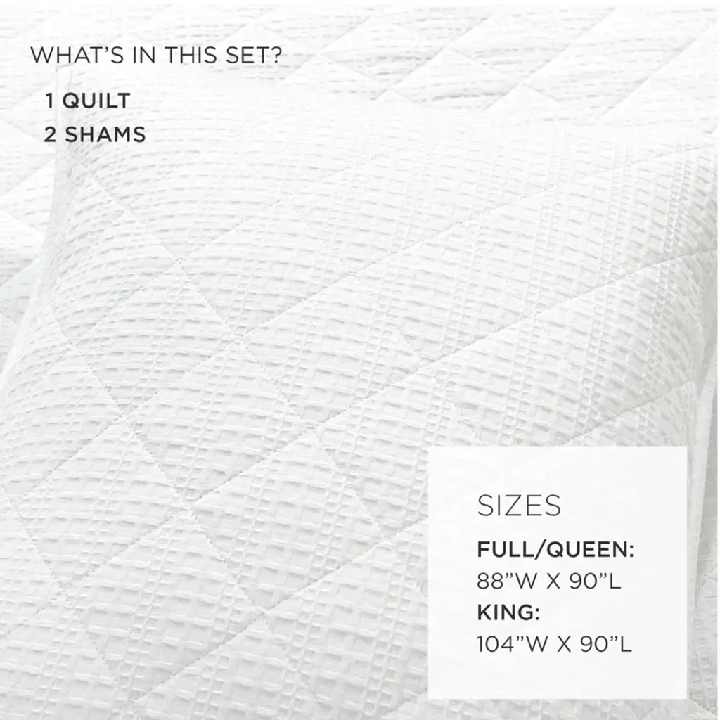 Haniya Solid Waffle Woven Cotton Textured Quilt 3 Pieces Set