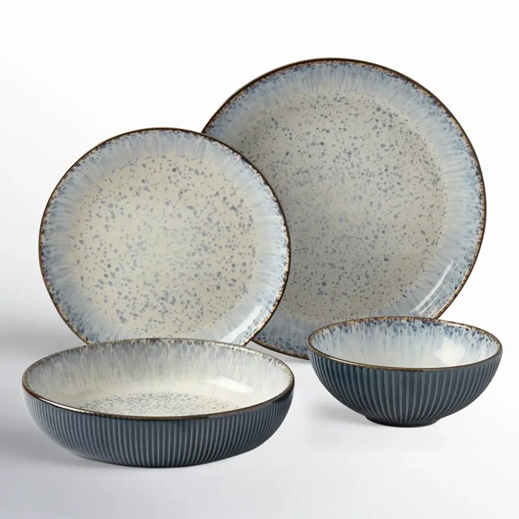 Treat your kitchen table as a canvas and decorate it with artistic and beautifully designed dinnerware. The dinnerware set features a gorgeous red that fades into a speckled interior.