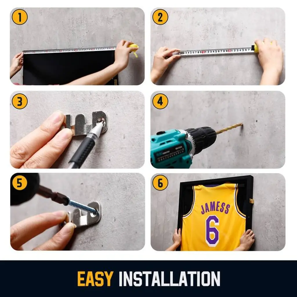 Are you ready to showcase your most prized sports memorabilia? Our Premium Jersey Display Frame is crafted to transform your cherished sports jerseys into a striking display piece, bringing the spirit of the game into any room. Whether you're a fan of basketball, soccer, baseball, or hockey, this versatile display frame is designed to accommodate a variety of jersey styles, sizes, and colors, allowing you to proudly showcase your collection.This display frame isn't just about style—it's built to protect. Made with a sturdy solid wood frame, this display case is made to last and provides a classic, timeless look that complements any home decor. The front panel is crafted from UV-protective acrylic, meaning your jersey will be shielded from harmful sunlight that can cause fading over time. This way, you can rest assured that the colors and signatures on your jersey will remain vibrant for years to come.Features: