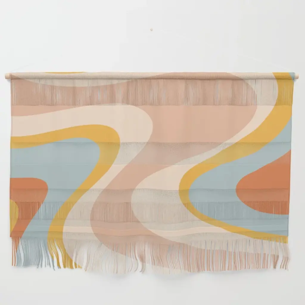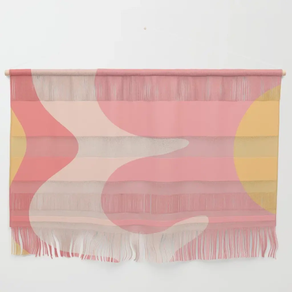 Happy Flower 60s Retro Vibe Pink Blush Mustard Wall Hanging