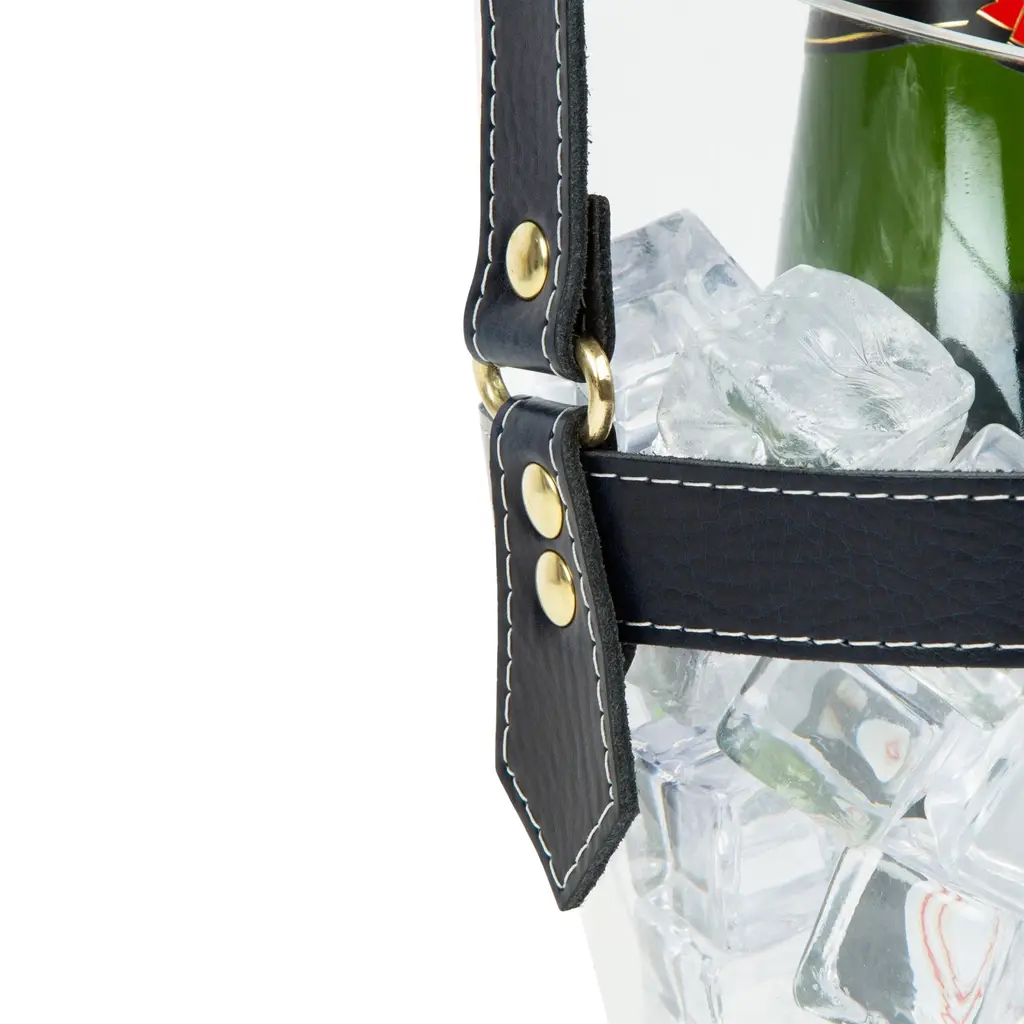 "Happy Go Sparkly" Champagne Bucket - Navy Leather Strap