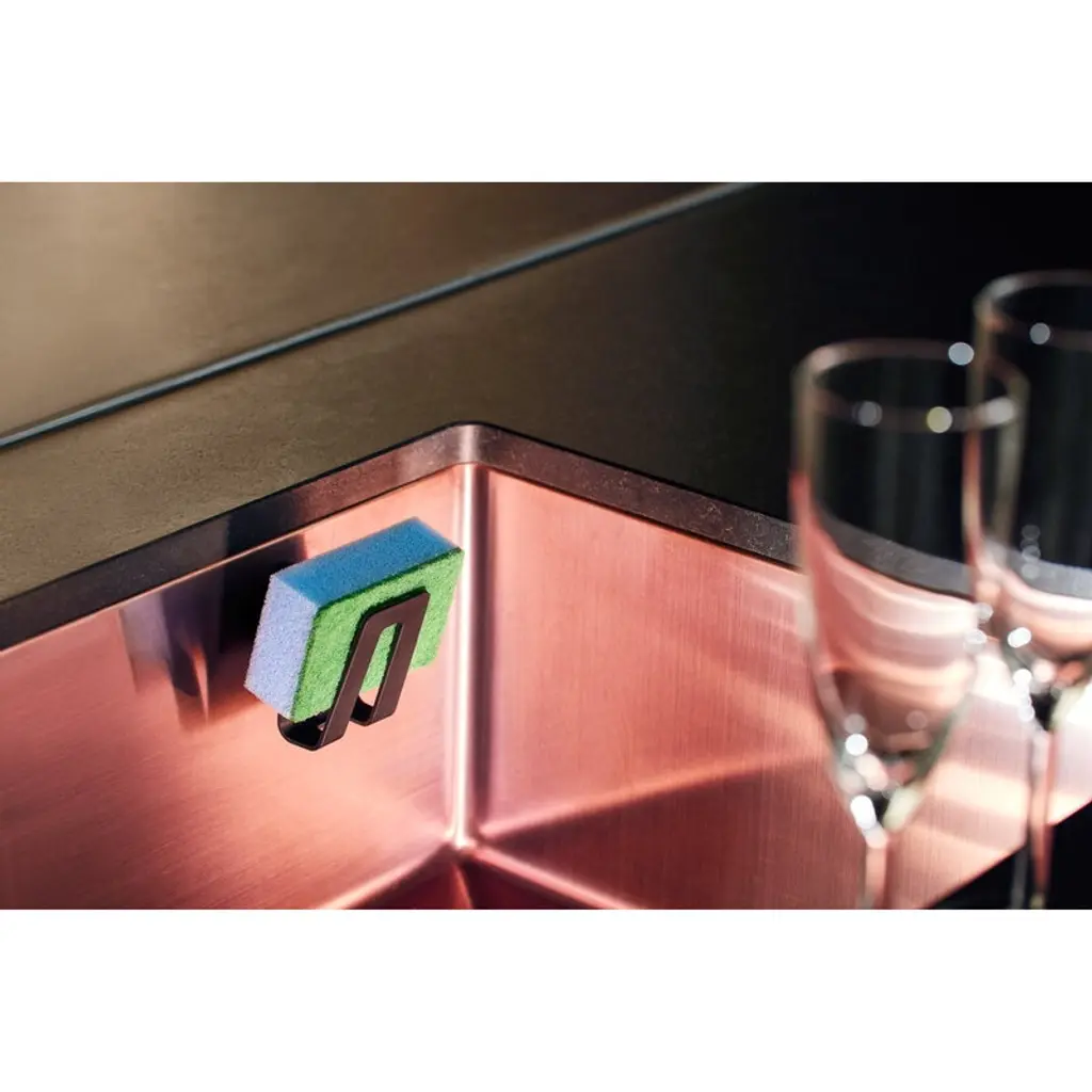 The Happy Sinks sponge holder allows you to store your kitchen sponges conveniently on the side of the sink. This way, the sponges dry quickly and hygienically, and you don’t have to store them on the kitchen counter anymore. The magnetic holder is easy to attach to any metal sink without tools. It is also suitable for composite sinks with a thickness of max. 0.2 x 0 in (5 x mm. mm).