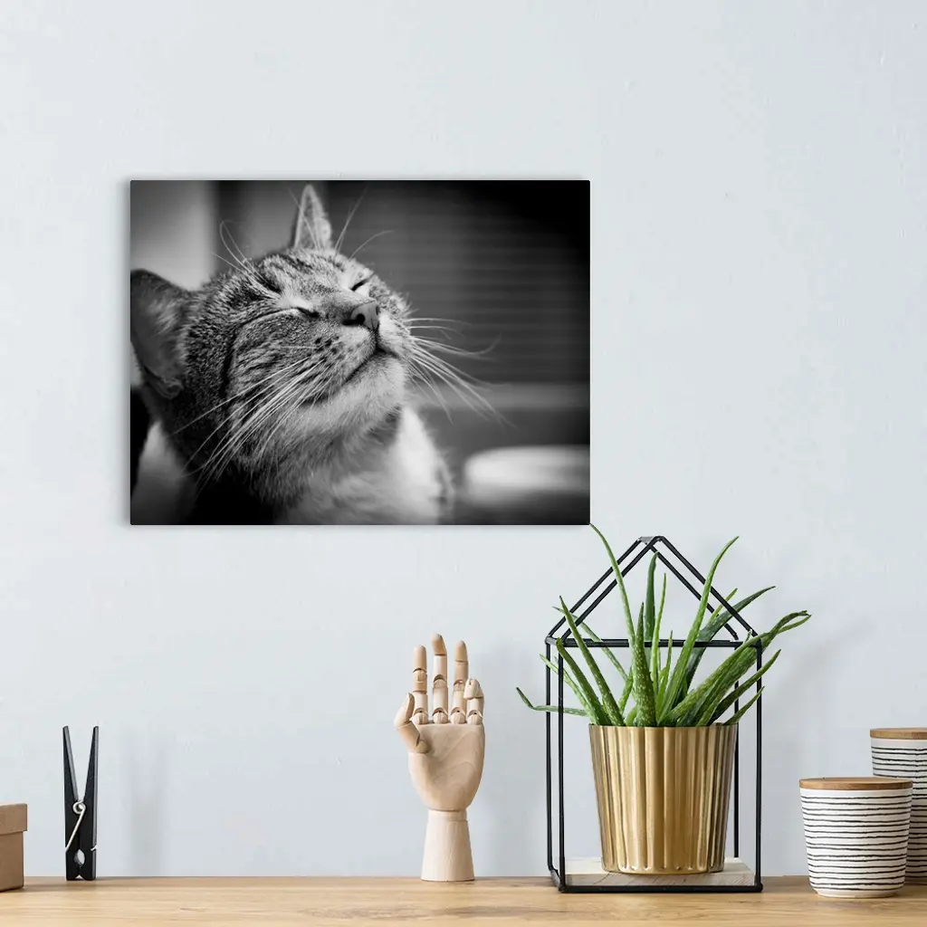Happy smiling cat portrait in black and white