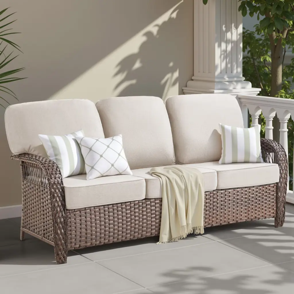 Harbor All Weather Wicker Three Seat Sofa, White Cushions