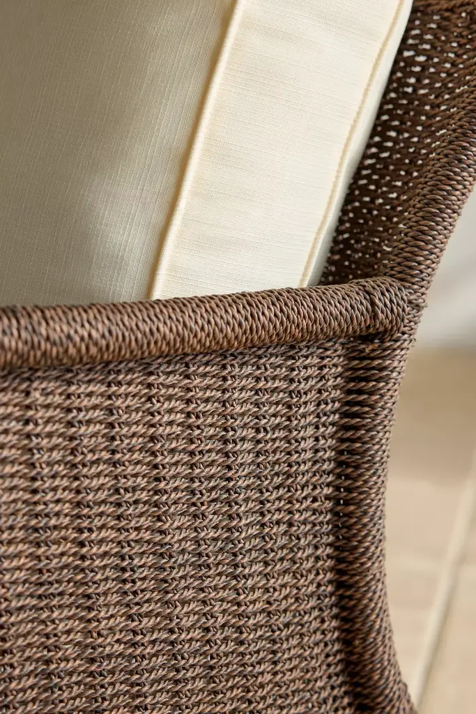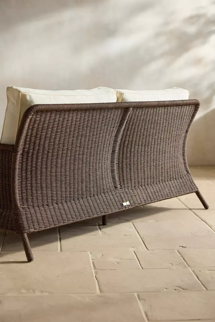 Handmade especially for terrain from durable poly rattan, this outdoor sofa pairs gracefully curved lines with a deep, comfortably cushioned seat thats perfect for relaxing on the patio or beside the pool. Seats two comfortably.