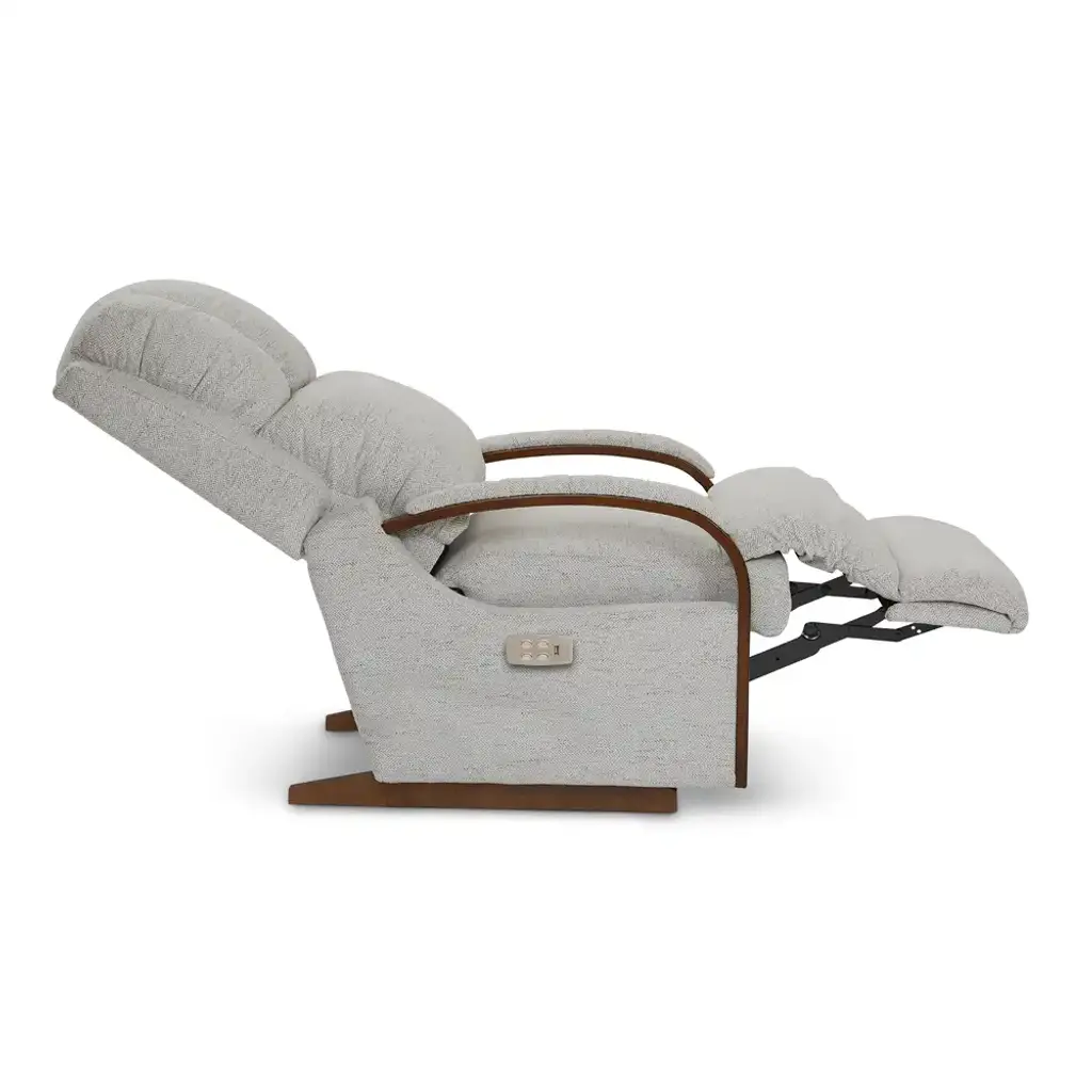 Designed for smaller rooms, the Harbor Town Power Rocking Recliner gives you the comfort of a recliner with a lighter silhouette and a sleek, stylish frame. It features a channel-stitched back, a cushioned headrest and bentwood arms topped with pillow-like padding. Simply use the side-mounted 4-button control panel to recline and raise your feet independently for a wide range of relaxing positions. There’s even a built-in USB port to power your phone or tablet. When you’re not reclining, it’s a relaxing rocker with a smooth, graceful motion.
