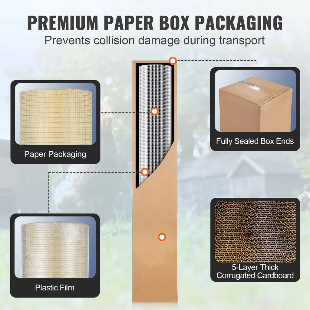 Heavy-Duty Hot-Dipped Galvanization: Our low-carbon steel hardware cloth undergoes professional hot-dipped galvanization for a uniform coating without bubbles. Pre-tested for salt spray, it ensures durable corrosion resistance, lasting through years of outdoor use without needing replacements. Robust Welded Structure: Our hardware cloth is welded from low-carbon steel wire into a sturdy mesh structure, followed by a post-weld galvanization process. Each weld point is zinc-coated to prevent detachment, ensuring a bright, rust-proof finish even after prolonged exposure to different weather conditions. 1/4-inch / 1/2-inch Fine Mesh: Featuring narrow 1/4" / 1/2" mesh, even small animals find it difficult to penetrate. Perfect for safeguarding vegetable gardens from small rodents like squirrels, rabbits, raccoons, skunks, foxes, snakes, and more. Enhanced Packaging: To prevent damage during transportation, Our hardware cloth is packaged in five layers of reinforced cardboard boxes with fully covered sealing at both ends. Internally, it's wrapped with plastic film and paper, ensuring waterproof and rustproof protection. Minimize the risk of damage and ensure safe delivery! Easy to Cut and Use: Simply cut with scissors or wire cutters to create different shapes and sizes for chicken coops, garden beds, rabbit fences, hedges, drainage grid fences, flower beds, DIY projects, and more. Caution: Beware of sharp edges after cutting; always wear gloves when handling. Package Content 1 x Roll of Hardware Cloth