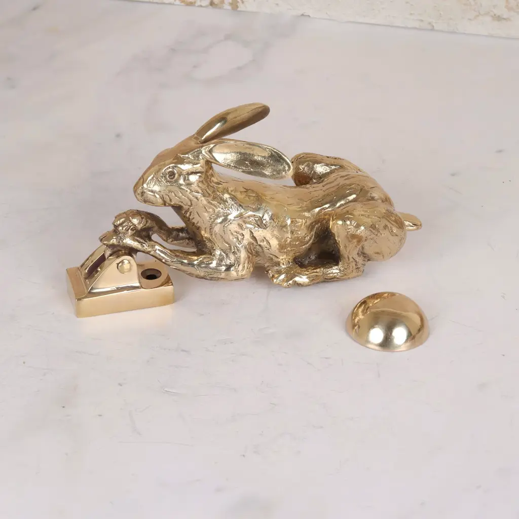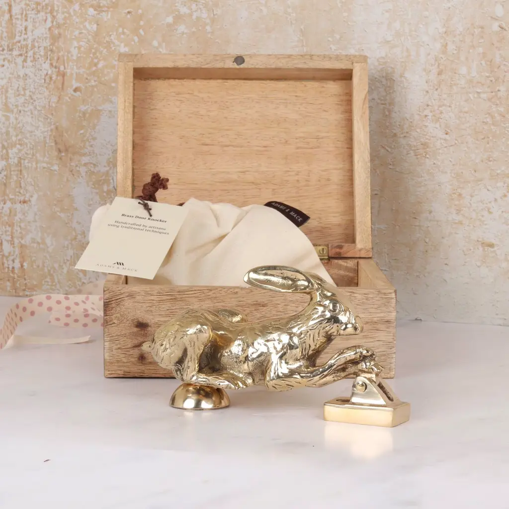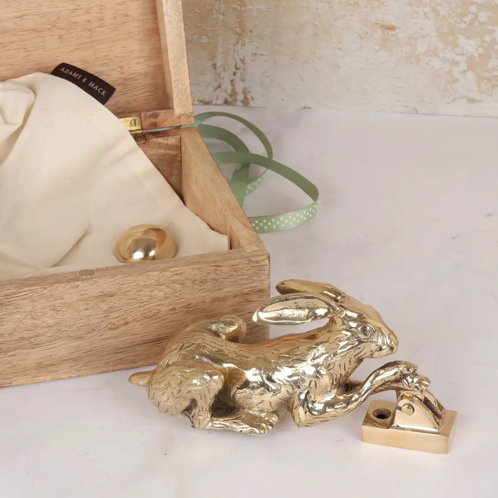 A unique hare door knocker design that captures the spirit and elegance of a hare. Cast from solid polished brass, it’s easy to hold and delivers a satisfying knock despite its delicate appearance—each piece weighs nearly 1kg. Handcrafted using traditional techniques, subtle variations are to be expected and are part of its charm. Each door knocker is engraved with the maker’s mark and made to last a lifetime. Suitable for wooden and solid core composite doors, with a surface-mounted bracket and fixings included. Presented in a wooden gift box with a branded dust bag. Other finishes available—see our website for details.