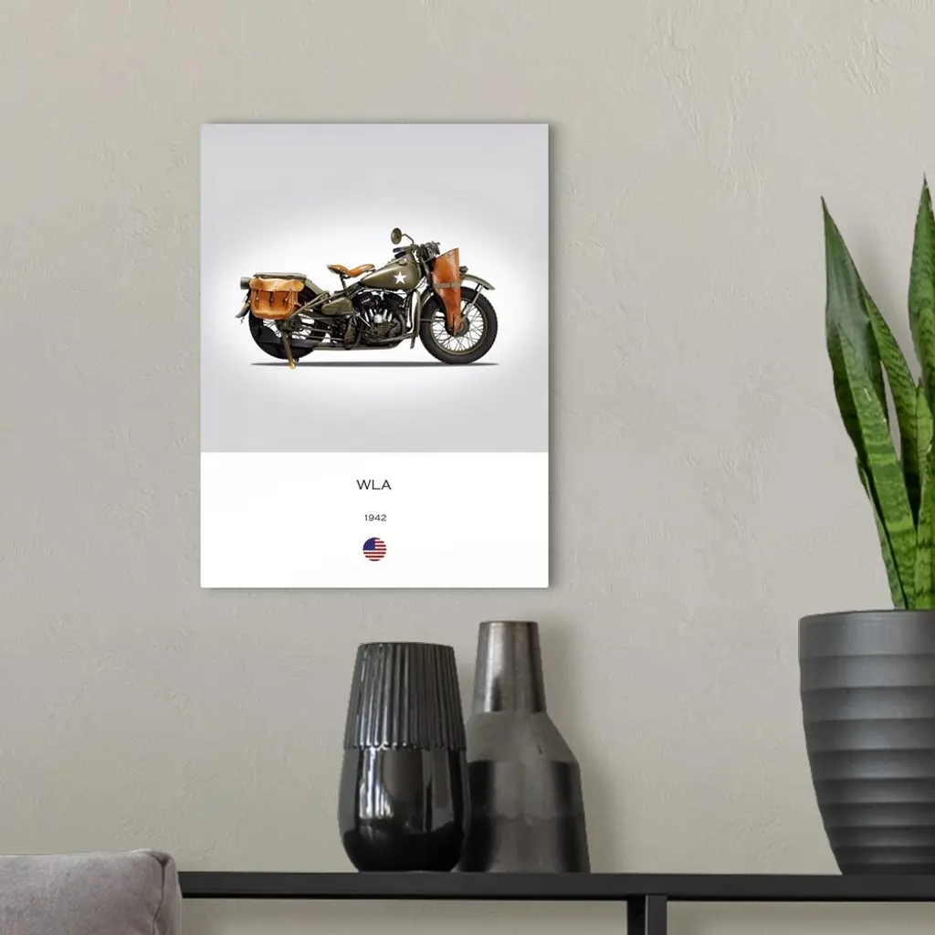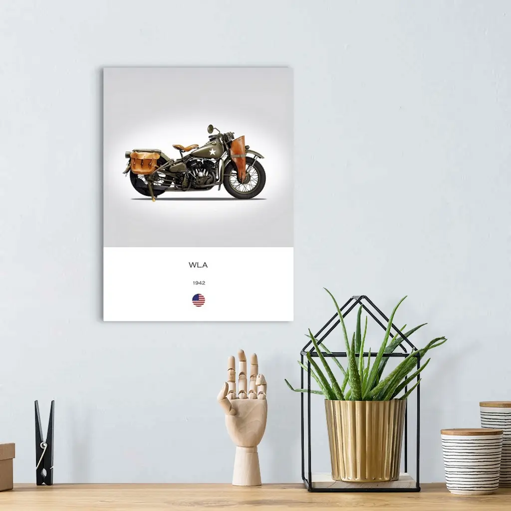 Photograph of a Harley Davidson WLA 1942 printed on a white and gray background.