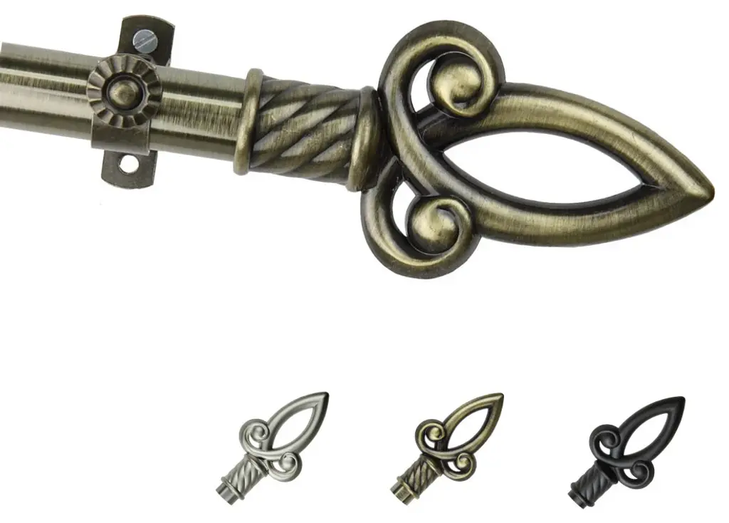 Finish off the look of your window hardware with matching holdback sets. High quality steel J hooks and Resin finials. Perfect for tying back curtains to the side when draperies are open.Includes 2 J Hooks, Finials, and Mounting Hardware.Projection: 3"Finial measurement: 2.875" W x 2.5" H x 2.5" D