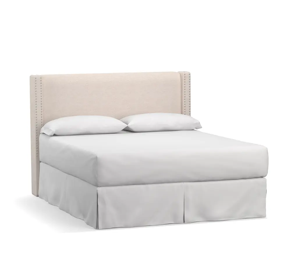 An updated take on a sheltering wingback, our Harper Upholstered Headboard creates a cozy backdrop for layered bedding and pillows. A double row of nailhead trim accentuates the lofty scale of this statement piece for your room.