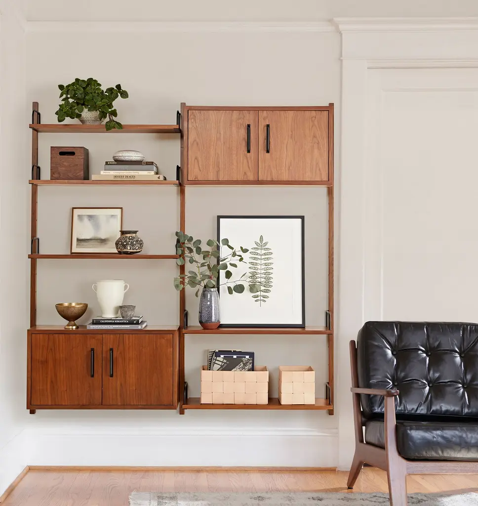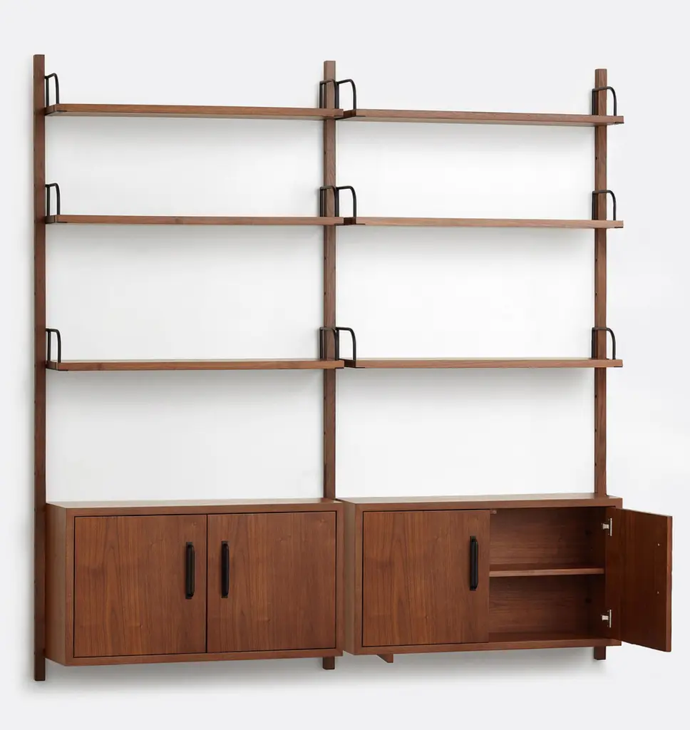 Hart Modular Walnut Double Shelving Unit With Double Cabinets