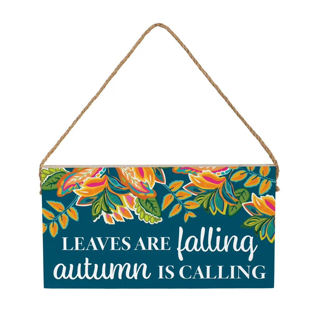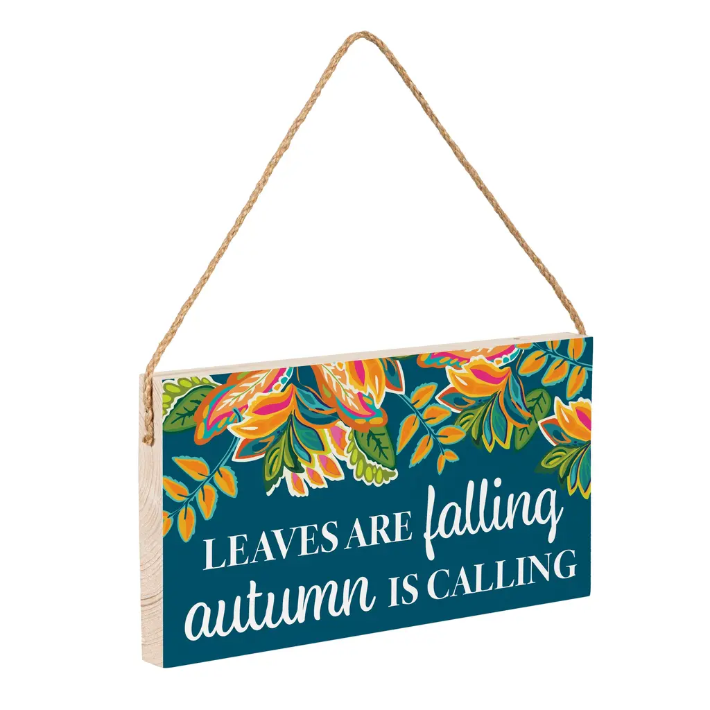 Harvest Blossom Jacobean Pumpkin Hanging Sign, "Leaves Are Falling Autumn Is Calling", 11"x6"
